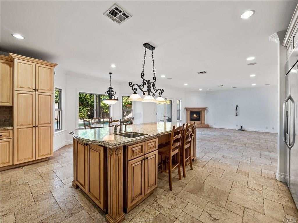 Stunning Gated Mediterranean in Prime Sherman Oaks Welcome to this gorgeous gated contemporary Mediterranean home located in the heart of Sherman Oaks. Offering approximately 3,369 square feet of living space, this impressive residence features 5 bedrooms and 4 bathrooms, thoughtfully designed for both comfort and style. Step inside to soaring vaulted ceilings, abundant natural light, and three elegant fireplaces that create a warm, inviting atmosphere. The spacious chef’s kitchen is a true centerpiece, complete with an oversized island, ample cabinetry, and a sunny eat-in area—all seamlessly open to the expansive family room, perfect for entertaining. A separate living room and formal dining room provide additional space for gatherings. The luxurious primary suite is a private retreat, featuring high ceilings, dual walk-in closets, a spa-like bathroom, and its own fireplace. A convenient downstairs bedroom offers flexibility for guests, a home office, or multigenerational living. Enjoy California living at its finest with a private backyard featuring a pool and spa, along with a security system equipped with cameras for added peace of mind. Ideally situated just moments from Ventura Boulevard, with easy access to the 101 and 405 freeways, and convenient proximity to the Westside, this home offers both tranquility and accessibility. A MUST SEE!