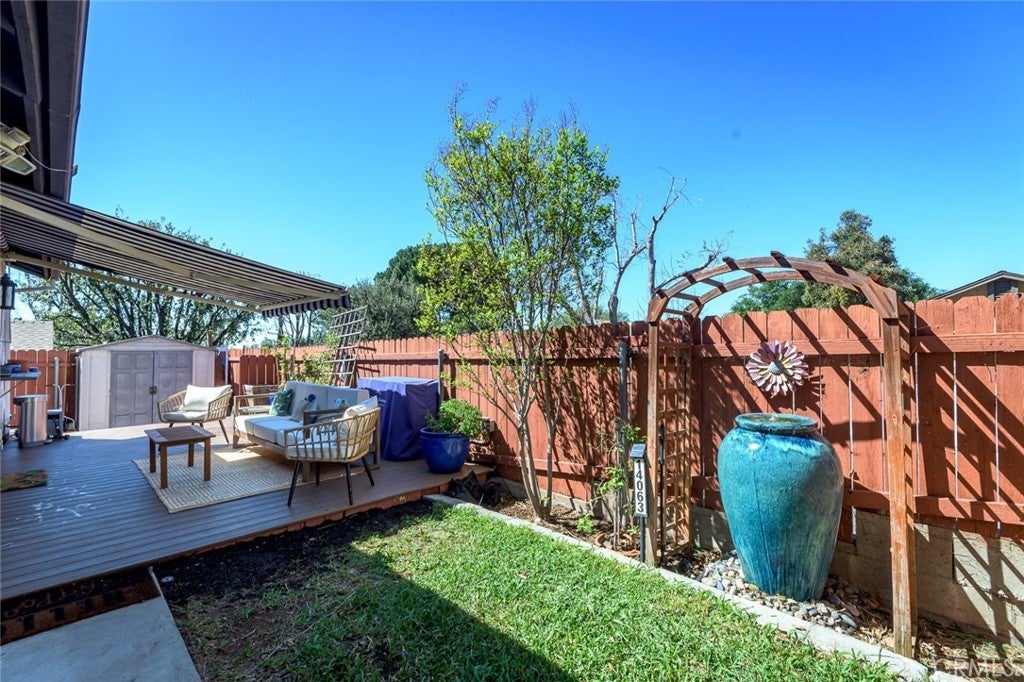Welcome to 14063 Fenton Lane, a charming and beautifully maintained home nestled within the quaint and peaceful community of Heartland Village. Priced at $629,000, this inviting 2-bedroom, 2-bath residence offers 1,148 square feet of comfortable living space, ideal for first-time buyers or those looking to downsize without compromise. Step inside to find wood laminate flooring throughout, creating a seamless and welcoming flow. The upgraded kitchen is a true standout, featuring custom two-tone cabinetry, granite countertops, and a spacious eat-in area—ideal for casual meals, morning coffee, or gathering with friends and family. Thoughtful improvements bring both comfort and peace of mind, including a newer roof (just two years old), a recently installed AC condenser, and 220v for your electric car. Large windows and natural light enhance the home’s warm and inviting atmosphere, while views of the foothills provide a serene backdrop. One of the home’s most special features is the newly installed deck—your own private retreat. Imagine unwinding after a long day beneath the charming striped canopy, taking in the “wow” views of the foothills. Surrounded by an abundance of mature, soaring trees, the setting feels peaceful, private, and connected to nature. Residents of this neighborhood enjoy wonderful community amenities, including a sparkling pool and spa, a tennis court, and a lush greenbelt filled with mature trees and grassy open spaces—perfect for walking, relaxing, and enjoying the outdoors. This is a rare opportunity to own a thoughtfully upgraded home in a welcoming, nature-filled community that truly feels like a retreat—yet remains close to everyday conveniences. These homes don't become available for purchase often, so come see for yourself the reasons why!