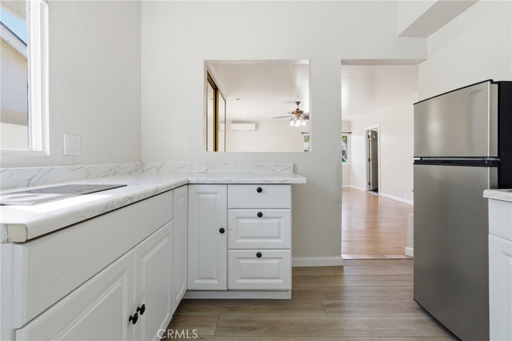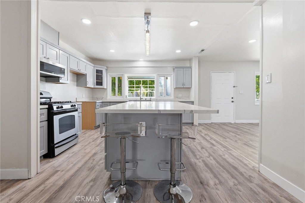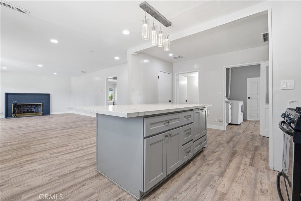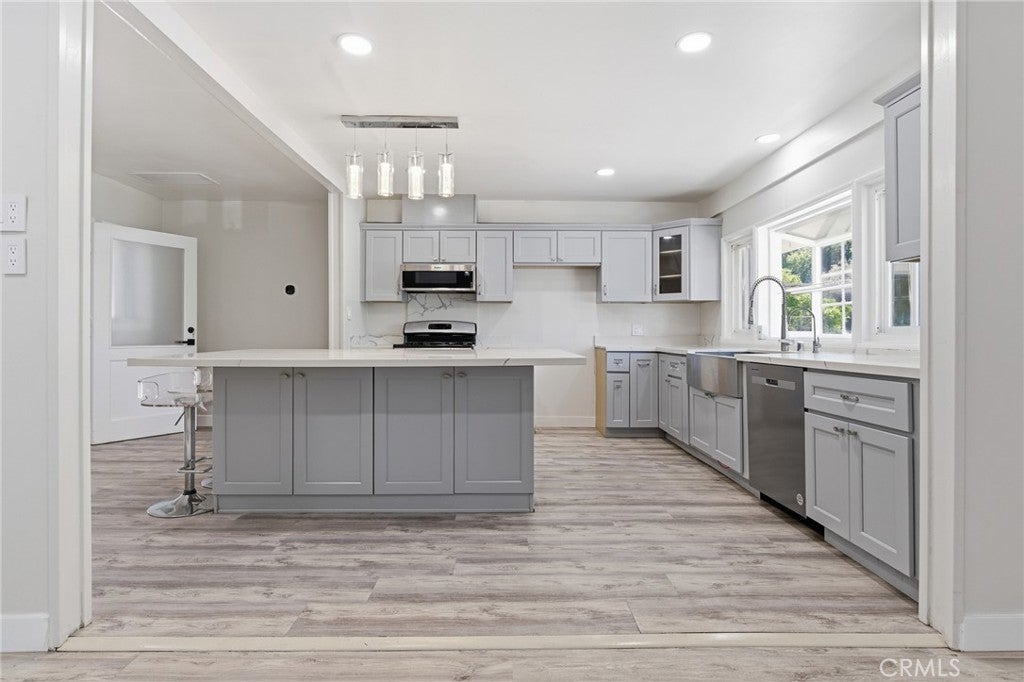 Welcome to this turnkey 2,804-square-foot home that has been recently updated, featuring 4 bedrooms and 3 bathrooms on a spacious 7,901-square-foot corner lot. Located on a quiet cul-de-sac, this residence greets you with a large open-concept floor plan where the living room, dining area, and remodeled kitchen flow seamlessly together. The kitchen is a chef’s delight, boasting quartz countertops and a center island with a breakfast bar, while the gas fireplace in the living room creates a warm and cozy ambiance. Designed with accessibility and comfort in mind, all bedrooms are generously sized with 36-inch wide doors, and the hallways are over 42 inches wide. The expansive family room/enclosed patio provides additional space for entertainment or a media room, and the enclosed sitting area in the back offers direct access to the backyard for everyday relaxation. A standout feature is the private suite with its own full kitchen and bath, perfect for in-laws or extended family. All the big-ticket items have already been handled for you, including a newer roof, updated electrical panel, central air and heat, and FULLY paid-off solar, ensuring both comfort and energy efficiency. Hurry to view this special property and see all it has to offer!