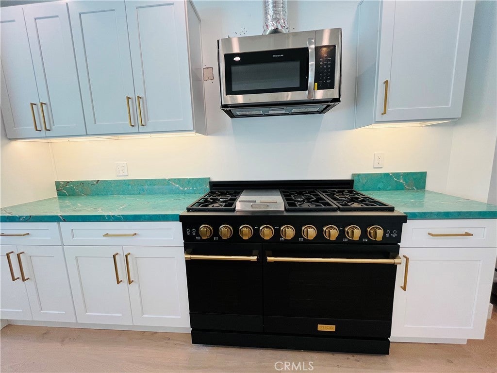 • AppliancesSixBurnerStove, Dishwasher, Gas Range, Microwave, Refrigerator, Tankless Water Heater