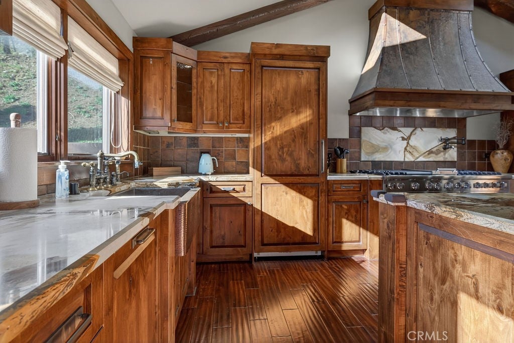The Ultimate Private Compound Discover an architectural rarity nestled at the base of the mountains, where sprawling acreage meets bespoke luxury. Beyond the private security gates, a verdant wall of 20-foot Ficus trees creates a lush, living fortress for this one-of-a-kind over 1 acre Sunland estate. Inside, 3,611 square feet of meticulously designed living space unfolds under soaring vaulted ceilings and hand-distressed wood beams. The heart of the home is a culinary masterpiece featuring top-tier appliances by Viking, Thermador, and Uline, framed by elegant copper accents and hand-stacked stone fireplaces. From the curated wine room and basement to the oversized three-car garage with 220V power, every inch of this 4-bedroom, 4-bathroom retreat has been upgraded to provide a lifestyle of unparalleled comfort and seclusion.