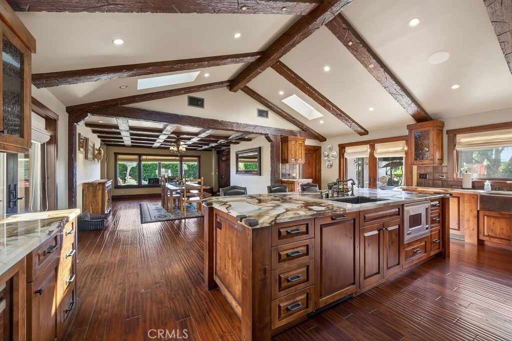 • Interior FeaturesCeiling Fan(s), Crown Molding, Separate/Formal Dining Room, Eat-in Kitchen, Granite Counters, High Ceilings, Open Floorplan, Recessed Lighting, Storage, Wired for Sound, All Bedrooms Down, Galley Kitchen, Main Level Primary, Primary Suite, Walk-In Pantry, Walk-In Closet(s), Beamed Ceilings, Instant Hot Water, Wine Cellar