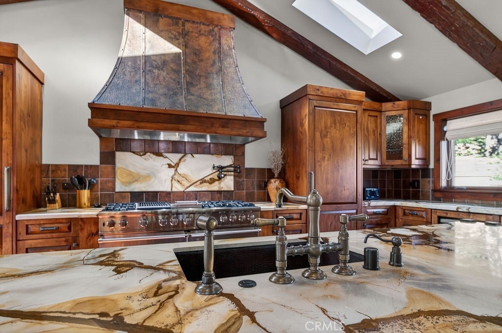 • AppliancesSixBurnerStove, Dishwasher, Freezer, Disposal, Microwave, Refrigerator, Range Hood, Water Softener, Tankless Water Heater, Vented Exhaust Fan, Water Purifier, Dryer, Washer