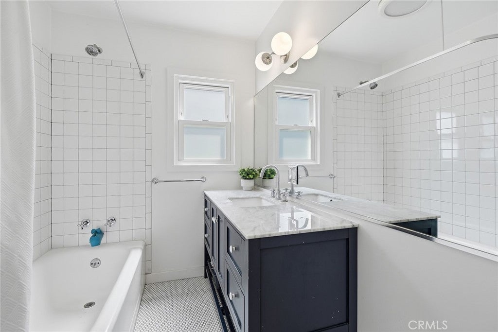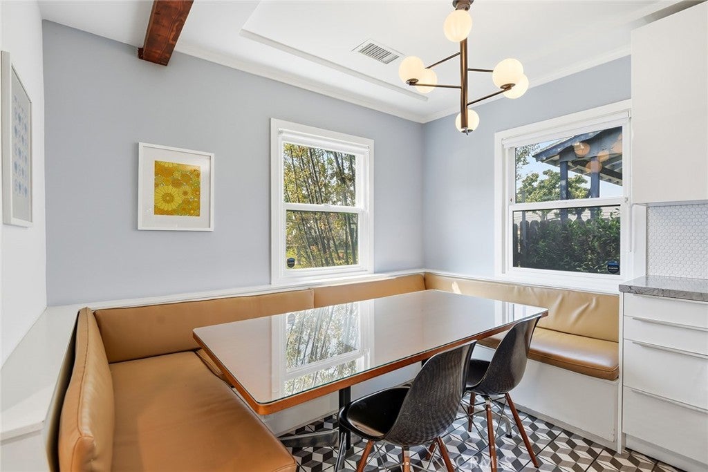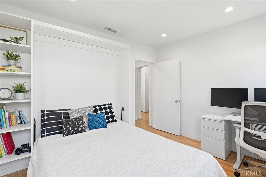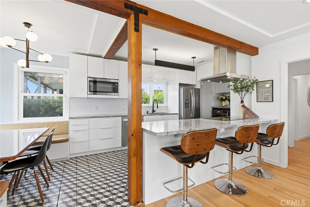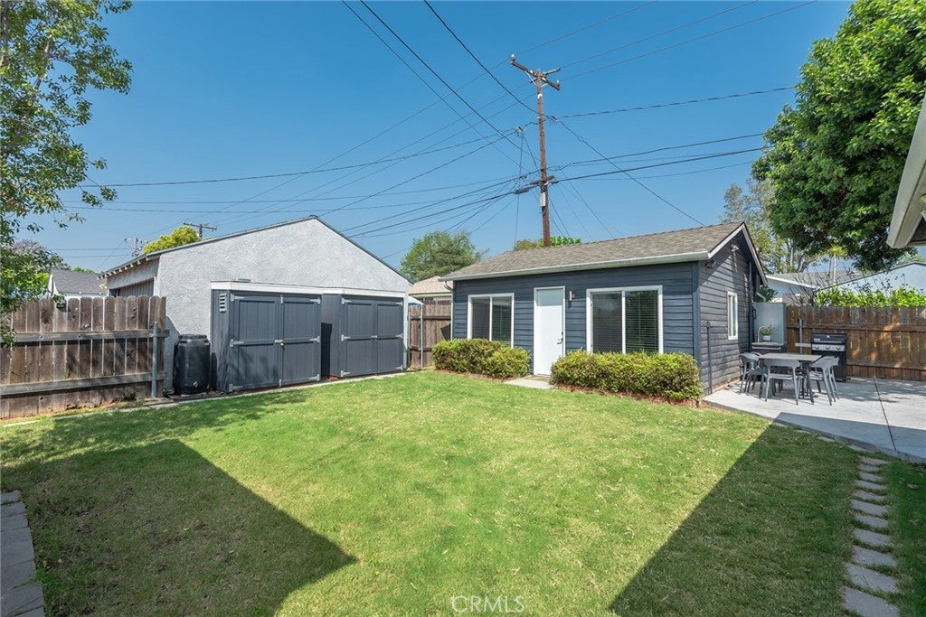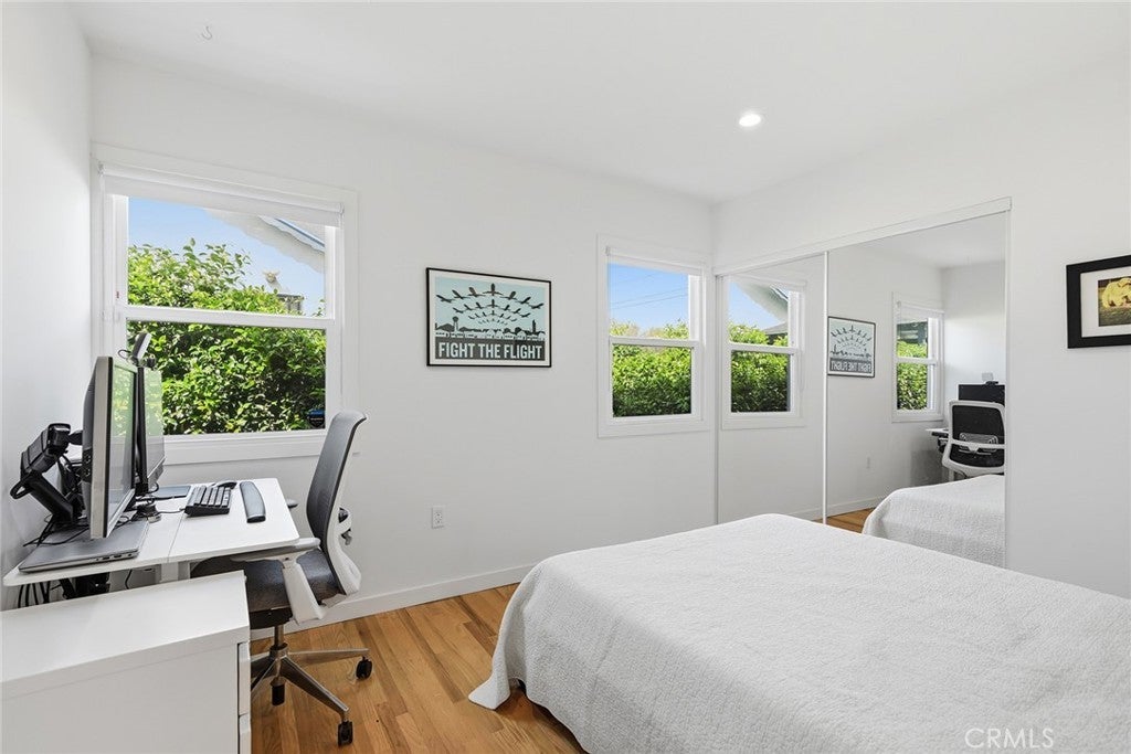 Beautiful La Tijera Village home with an additional 325 sq ft beautifully finished rear bonus structure with bathroom and laundry (bringing total living space to 1637sf) offering exceptional flexibility for an office, guest space, ADU, or future rental income (buyer to verify). Centrally located and incredibly convenient—about 15 minutes to LAX, 7 minutes to Culver City, 15 minutes to the beach, 10 minutes to SoFi Stadium, and 30 minutes to Downtown—this stylish, upgraded home blends modern design with timeless original oak floors, with three distinct structures offering exceptional flexibility and versatility. Major improvements include a new roof, paid off SOLAR, and water heater, plus windows and appliances replaced within the last 8 years. Enjoy efficient comfort with upgraded HVAC via separately controlled zones. The open kitchen, living, and dining layout is perfect for entertaining, featuring a generous built-in banquette and a modern kitchen finished with Grigio Tucci stone countertops. The primary suite offers a walk-in closet and modern bath with custom concrete sink and cabinetry, radiant heated floors, dual shower heads including rain and wall-mounted fixtures, and a skylight. Outside, there is a detached garage and a large private backyard featuring low-allergen grass with a water-efficient underground drip irrigation system and a newly poured concrete patio shaded by a mature pepper tree. Bonus: an additional 325 sq ft beautifully finished rear structure with bathroom and laundry offers exciting potential for an office, guest space, ADU, or future rental income (buyer to verify). A thoughtfully upgraded home with style, flexibility, and a rare combination of bonus space and central location that’s hard to find.