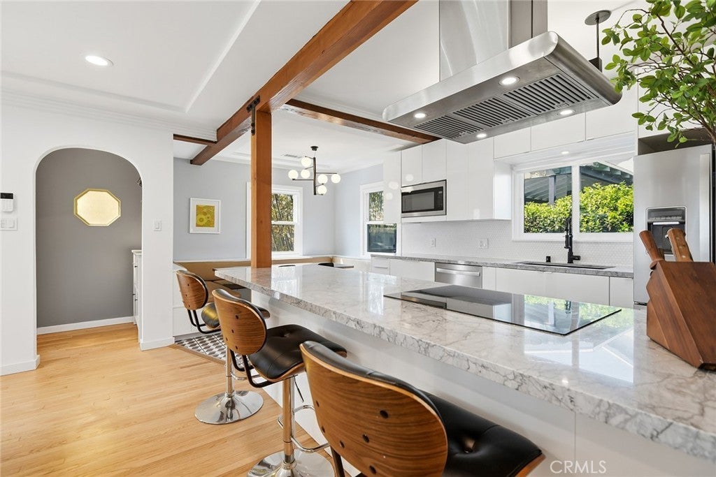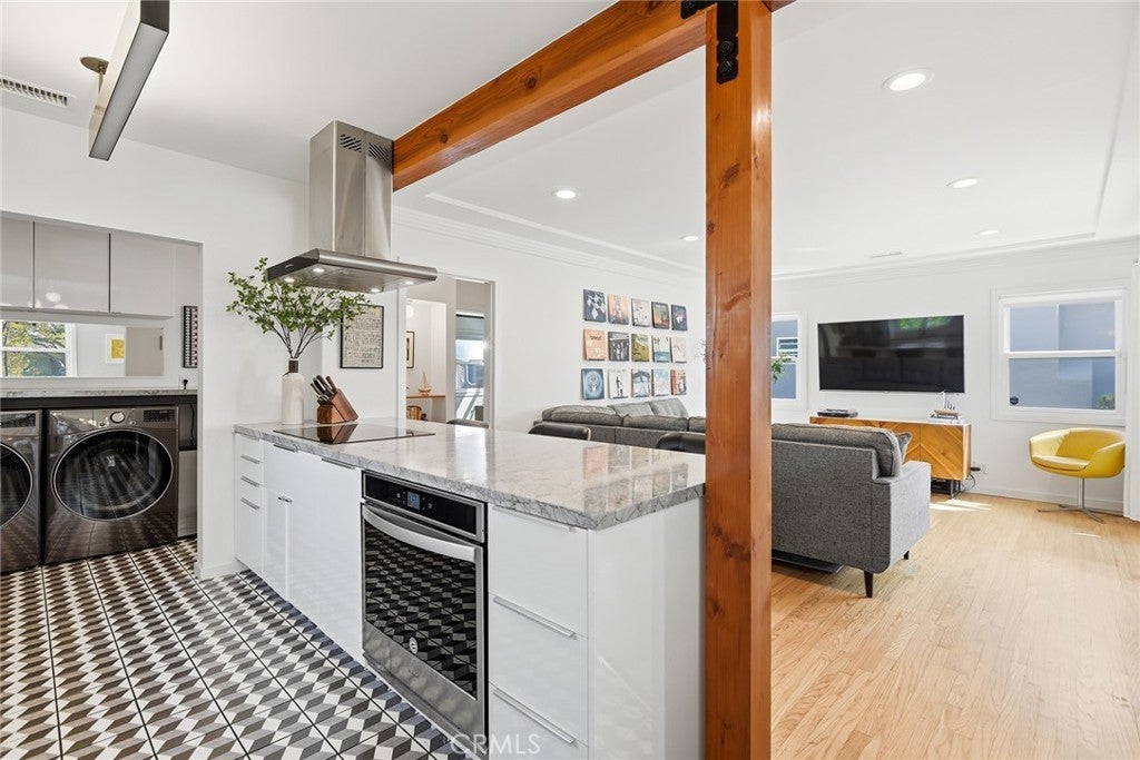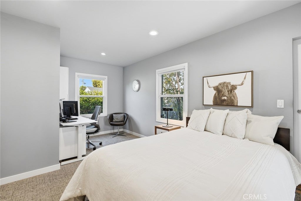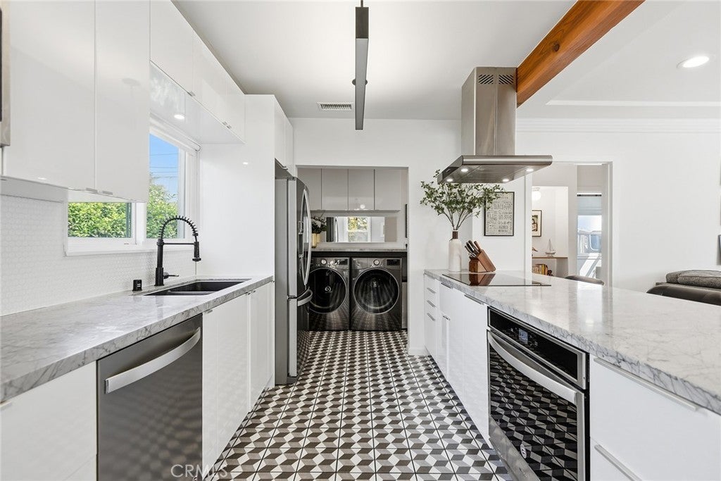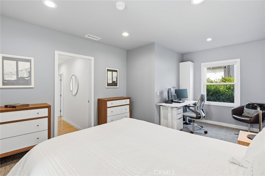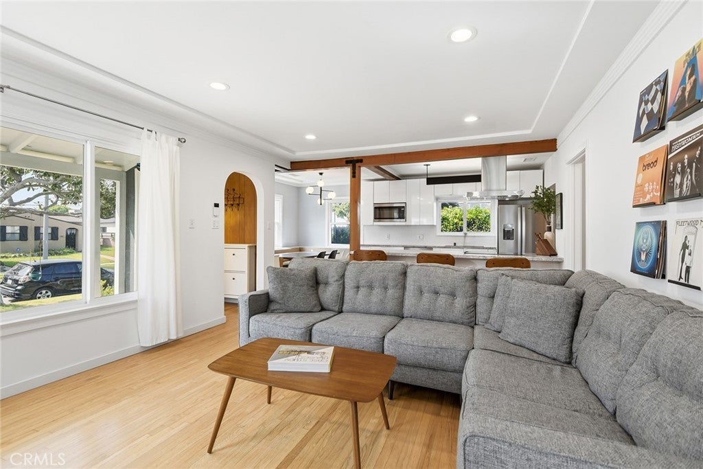 Beautiful La Tijera Village home with an additional 325 sq ft beautifully finished rear bonus structure with bathroom and laundry (bringing total living space to 1637sf) offering exceptional flexibility for an office, guest space, ADU, or future rental income (buyer to verify). Centrally located and incredibly convenient—about 15 minutes to LAX, 7 minutes to Culver City, 15 minutes to the beach, 10 minutes to SoFi Stadium, and 30 minutes to Downtown—this stylish, upgraded home blends modern design with timeless original oak floors, with three distinct structures offering exceptional flexibility and versatility. Major improvements include a new roof, paid off SOLAR, and water heater, plus windows and appliances replaced within the last 8 years. Enjoy efficient comfort with upgraded HVAC via separately controlled zones. The open kitchen, living, and dining layout is perfect for entertaining, featuring a generous built-in banquette and a modern kitchen finished with Grigio Tucci stone countertops. The primary suite offers a walk-in closet and modern bath with custom concrete sink and cabinetry, radiant heated floors, dual shower heads including rain and wall-mounted fixtures, and a skylight. Outside, there is a detached garage and a large private backyard featuring low-allergen grass with a water-efficient underground drip irrigation system and a newly poured concrete patio shaded by a mature pepper tree. Bonus: an additional 325 sq ft beautifully finished rear structure with bathroom and laundry offers exciting potential for an office, guest space, ADU, or future rental income (buyer to verify). A thoughtfully upgraded home with style, flexibility, and a rare combination of bonus space and central location that’s hard to find.