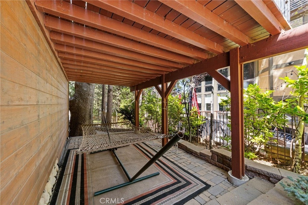 Set behind the gates of Meadow Shores, this custom-built Lake Arrowhead retreat blends mountain charm, elevated comfort, and countless recreation choices including coveted lake rights and a private dock. Designed for both relaxation and entertaining, the 4-bedroom, 3-bath home comes fully furnished with everything you need to move-in and begin serene living immediately. Walking through the front door a dramatic two-story foyer with soaring ceilings sets the tone, leading to formal living and dining areas highlighted by fireplaces and rustic design elements, while the open-concept kitchen and family room showcase custom cabinetry, premium appliances, and seamless access to expansive wrap-around decks and a private spa area with hot tub. Thoughtfully designed layout with multiple indoor and outdoor gathering spaces. A large game room with a full bar provides the perfect setting for hosting fun-filled events, while upstairs, the spacious primary suite offers a true retreat with its own fireplace, spa-inspired bath, and dual walk-in closets, accompanied by three additional bedrooms and a beautifully updated guest bath. The grounds are ideal for outdoor enjoyment, complete with a fenced yard, patio, and charming accents, all just minutes from Lake Arrowhead Village and Country Club. Other features include dual air conditioning, backup generator, ample parking, and direct level entry from the attached two-car garage. If you are looking for a home with a rare combination of privacy, luxury, functionality, and refined lakeside living, you have found it here.