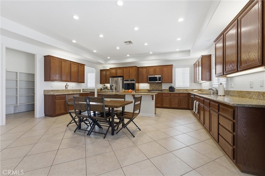Major price improvement-now $779,000. Exceptional value for the area. This beautifully maintained and move-in ready home sits on a rare 1/3 acre lot with RV parking and extensive upgrades throughout. Experience the polish and sophistication of a true model-like home, ideally situated on a sprawling lot with sweeping mountain views. This meticulously maintained residence offers plush, manicured landscaping in both the front and back yards, creating a private and serene setting. Extensive upgrades elevate the home throughout, including fresh interior paint and a professionally re-stuccoed exterior finished with 25-year paint. Striking oversized double wrought iron front entry doors with operable glass panels welcome in natural light and refreshing summer breezes. Inside, you'll find poly wood shutters, high-profile baseboards, LED lighting throughout, and thoughtfully selected finishes that blend comfort with modern elegance. The kitchen is appointed for both everyday living and entertaining, featuring granite countertops, above and below-cabinet LED lighting, a breakfast bar, and updated premium appliances--including a versatile oven with 20 cooking functions (air fryer and convection included), a 5-burner cooktop, and a dishwasher. A butler's pantry seamlessly connects to a dedicated 12' x 10' movie room complete with wall projector and 9' screen, offering a true in-home theater experience. The expansive primary suite is accessed through double doors and serves as a private retreat, complete with a custom Closet World walk-in closet, garden tub, and oversized shower. Additional highlights include waterproof-backed carpet, updated hall bath with new tub and toilets, a large linen closet, laundry room with sink, and multiple architectural niches perfect for displaying art. Outdoor living is equally impressive, featuring a built-in gas firepit, dog run with drainage, mature evergreen landscaping, olive trees, and blooming wisteria--all maintained on efficient drip systems The property is also equipped with two tankless water heaters, RV waste dump, abundant parking, and an oversized two-car garage. Additionally, the home is pre-plumbed for a future ADU or casita, offering flexibility for extended living or guest accommodations. Set within a highly desirable, quiet westside neighborhood with no Mello-Roos and no HOA, this exceptional property offers a rare blend of luxury, functionality, and long-term value.