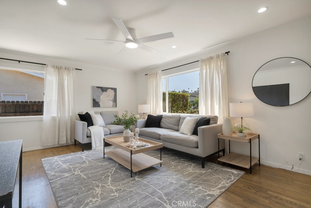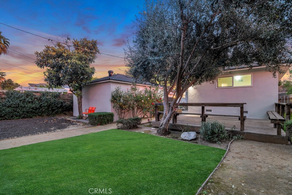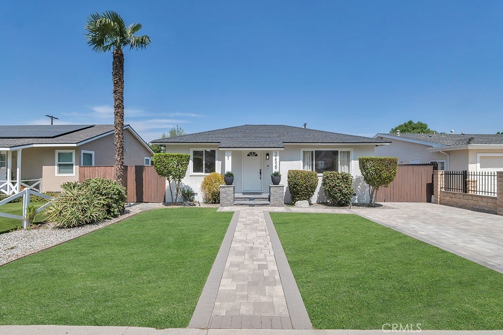Welcome to this charming single-story family home boasting 3 spacious bedrooms and 2 updated bathrooms, ideally located on a tree-lined, desirable street in the heart of Woodland Hills. The interior features crisp lines and soaring living spaces within a 1,290-square-foot floor plan and a sprawling 6,752-square-foot lot, all at an unbeatable price point. Stunning curb appeal greets you with a lush manicured lawn, a stylish paver walkway, and fresh landscaping that set the tone for what's inside. The bright and airy living room features expensive flooring, recessed lighting, and a modern ceiling fan, creating an inviting space to relax or entertain. The kitchen is well-appointed with rich maple cabinetry, dark granite countertops, and a full suite of stainless steel appliances. Both bathrooms have been thoughtfully upgraded. The oversized backyard is a true outdoor retreat complete with artificial turf, a wood deck perfect for al fresco dining, mature olive trees for natural shade and privacy, and a detached 2-car garage with additional storage and expansive flat yard. Located just moments from Ventura Boulevard's shops, dining, and easy freeway access, this Woodland Hills gem is the perfect opportunity to own in one of the San Fernando Valley's most sought-after neighborhoods.
