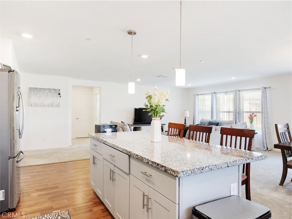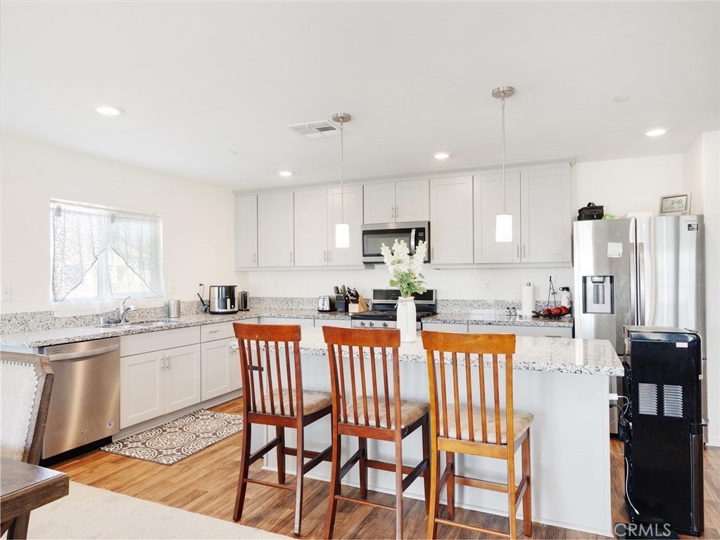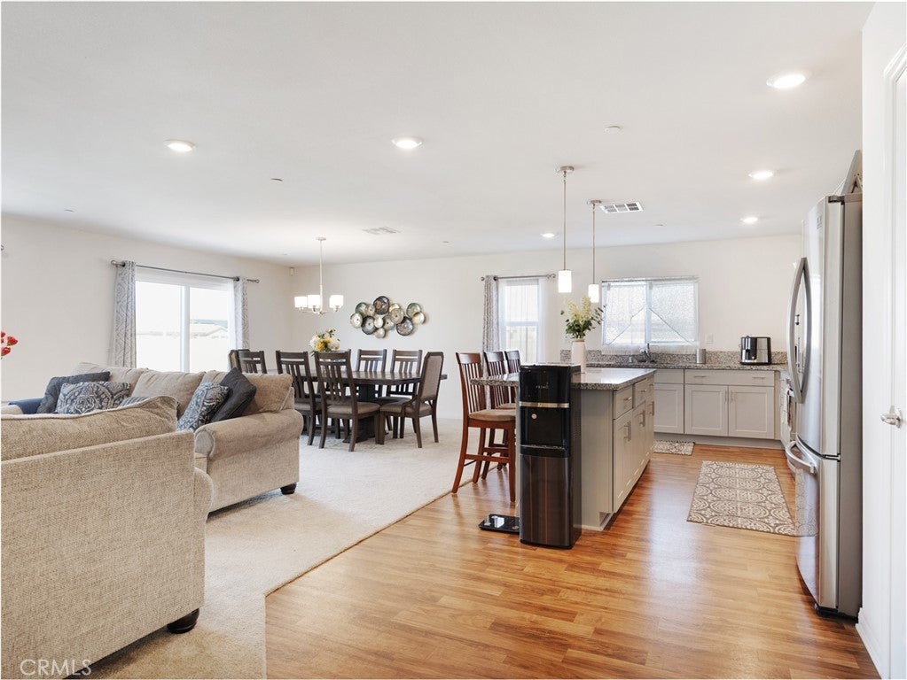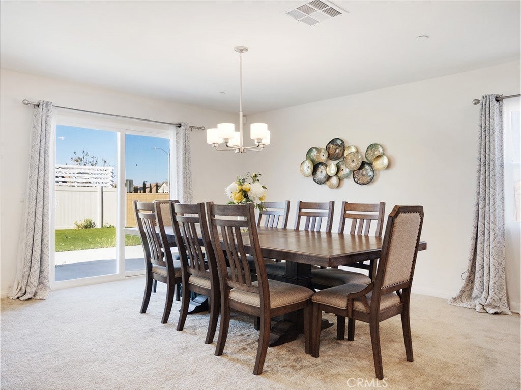 Modern living meets energy efficiency in this beautifully maintained 2020-built single-story home located in the desirable Sapphire Dunes tract with no HOA. Situated on a corner lot, this 3-bedroom, 2-bathroom home offers approximately 2,179 sq ft of living space, plus a den ideal for a home office or additional living space. Step inside to find a well-designed layout with a combination of durable flooring and comfortable carpeting throughout. The kitchen features stainless steel appliances and contemporary finishes, opening to the main living areas for easy everyday living and entertaining. Enjoy year-round comfort with central AC and the added benefit of solar panels for improved energy efficiency. The spacious lot provides a low-maintenance backyard with turf and concrete, perfect for outdoor gatherings. Complete with a 2-car garage and additional driveway parking, this home offers both convenience and functionality. Conveniently located near shopping and dining, including Super Walmart, Aldi, and Stater Bros., with easy access to local amenities. This move-in ready home is a great opportunity in a growing Lancaster community.