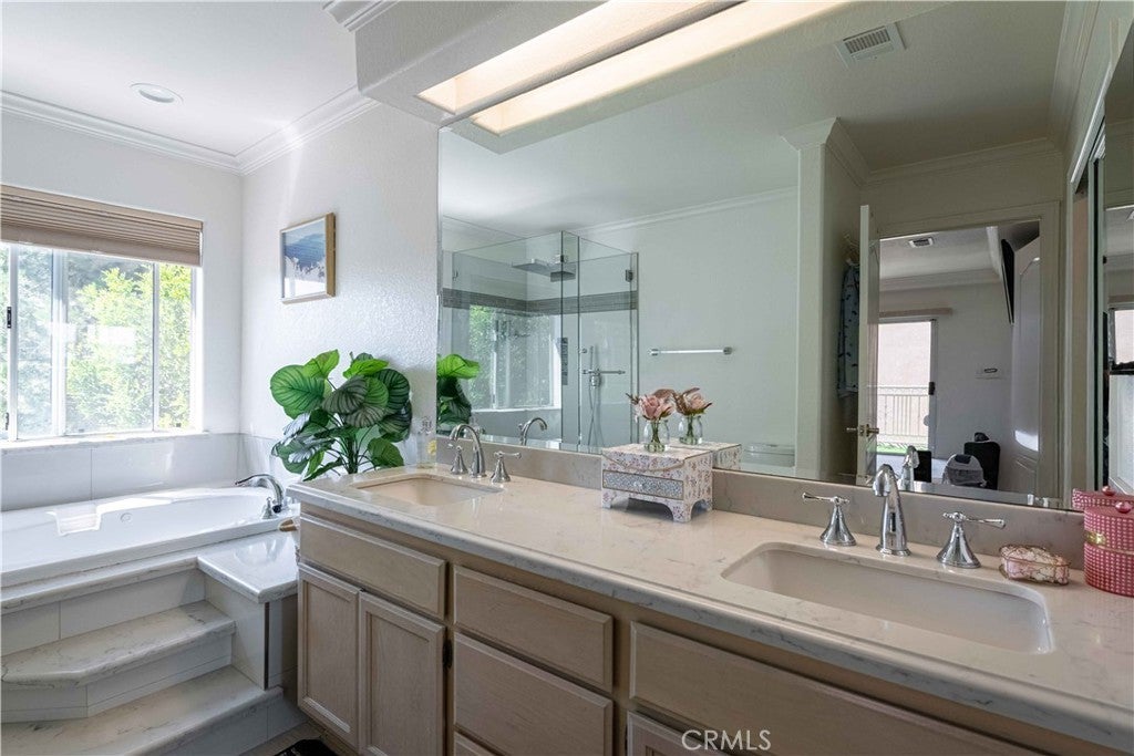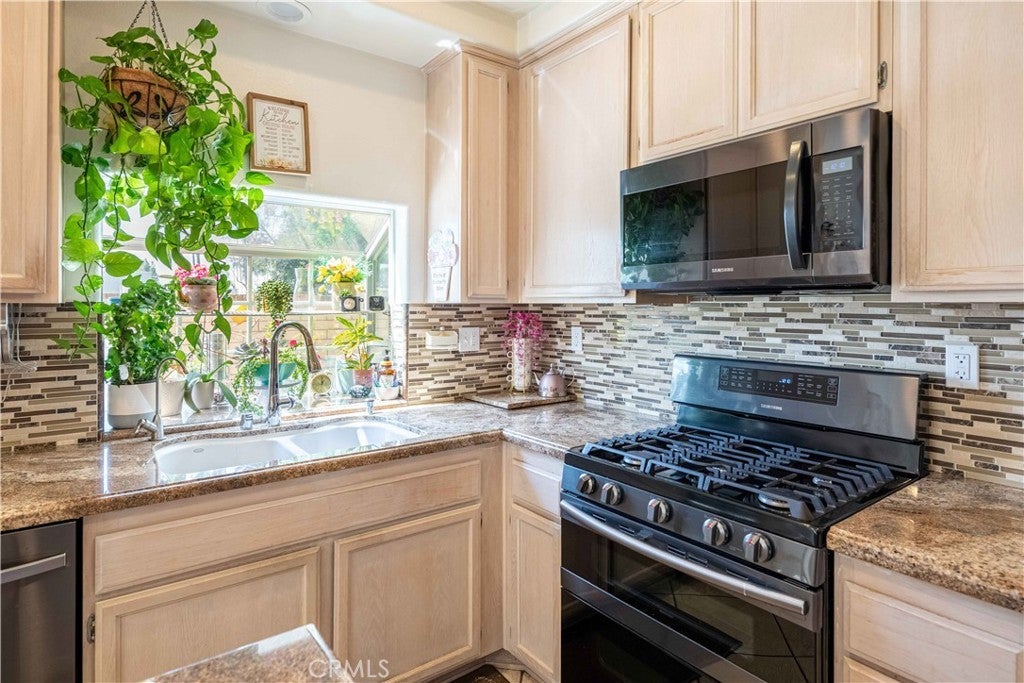 Welcome home to one of the most desirable neighborhoods in Simi Valley—where comfort, style, and thoughtful upgrades come together in this beautifully updated 4-bedroom, 2.5-bath residence. Step inside to a stunning formal living room with cathedral ceilings and a warm, inviting fireplace that flows seamlessly into the formal dining area. A large sliding glass door opens to a private, beautifully landscaped backyard, creating the perfect indoor-outdoor living experience. The updated kitchen is designed to impress, featuring granite countertops, a sleek glass tile backsplash, and upgraded appliances—including a versatile split oven. Thoughtful touches like a touchless faucet and built-in paper towel dispenser elevate everyday convenience, while the charming garden window offers serene views of the backyard in bloom. Upstairs, a spacious landing provides the ideal flex space for a home office or reading nook. The light-filled primary bedroom is a true retreat, complete with a private balcony and a fully remodeled en-suite bathroom featuring a jacuzzi tub, spa-style shower, and generously sized walk-in closet. The secondary bedrooms are equally inviting, offering ample space, high ceilings, and excellent storage—including an unexpected walk-in closet in one of the guest rooms. This home is loaded with upgrades, including modern window treatments with top-down and blackout options, a space-saving jackshaft garage door opener, a circulating hot water system, and extensive built-in storage throughout—including custom garage cabinetry and shelving. Step outside to a backyard designed for entertaining, with a built-in gas line ready for your BBQ and plenty of room to relax, dine, and enjoy the California lifestyle. Close to parks, schools, restaurants, and family entertainment, this rare beauty is what SoCal living is all about.