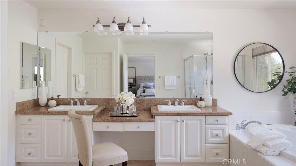 NO MELLO ROOS OR HOA FEES, Welcome to this beautifully appointed home offering space, style, and exceptional indoor-outdoor living in a prime Santa Clarita location. From the moment you arrive, you’ll be captivated by the charming front porch and inviting curb appeal. Step inside to soaring ceilings, warm woodlike flooring, crown molding, and recessed lighting that enhance the home’s bright and open floor plan. The formal living room with a cozy fireplace flows seamlessly into the formal dining room—ideal for entertaining and everyday gatherings. The spacious kitchen is designed for both function and connection, featuring double ovens, a prep island, breakfast bar, and ample space for hosting—all overlooking the backyard. Adjacent, the inviting family room offers a custom fireplace and built-in cabinetry, creating the perfect setting for relaxation. The primary suite is a true retreat, complete with a private sitting area and its own fireplace—perfect for unwinding at the end of the day. The attached primary bath offers a spa-like experience with a soaking tub, and a large walk-in closet with custom organizers provides both luxury and functionality. Upgrades include a newer roof (approximately 2 years old) and upgraded windows for added comfort and efficiency. Step outside to a pool-sized backyard with endless potential, complemented by a large side yard currently used as a pickleball court—ideal for recreation, entertaining, or future customization. Conveniently located just minutes from the I-5 freeway and vibrant downtown Newhall, with its array of restaurants, coffee shops, and local hotspots, this home offers the perfect blend of comfort, style, and accessibility.