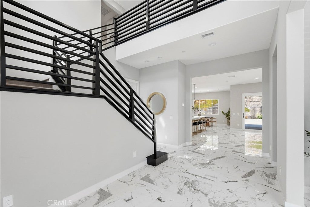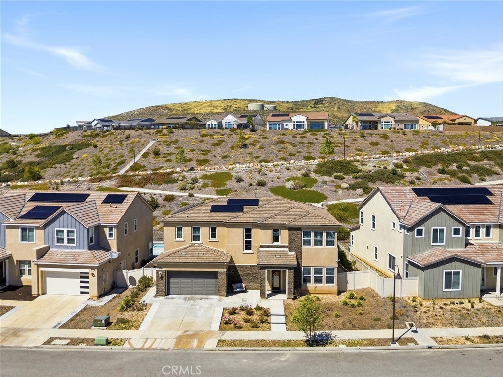 Welcome to this absolutely stunning Skyline residence, where thoughtful design meets elevated living. Offering 4 spacious bedrooms, 4 full baths, an expansive bonus room with potential for a 5th bedroom, plus a versatile downstairs office or den, this beautifully appointed Starling Plan 2 truly has it all. From the moment you step inside, you’re greeted by a grand foyer with soaring ceilings and an immediate sense of light and openness. The home is finished in a timeless, neutral palette and showcases high end upgrades throughout, including elegant marble flooring downstairs, luxury vinyl plank flooring upstairs, quartz countertops, and recessed lighting that enhances every space. At the heart of the home, the chef’s kitchen is both sophisticated and functional, featuring white quartz countertops and backsplash, ceiling height cabinetry with refined gold hardware, upgraded stainless steel GE Profile appliances, a butler’s pantry, and a generous walk-in pantry. It flows effortlessly into the dining and family rooms, creating the perfect setting for both everyday living and effortless entertaining. Just off the kitchen, the oversized bonus room offers incredible flexibility with direct backyard access. Upstairs, you’ll find a well appointed laundry room with a sink and ample storage, along with all secondary bedrooms. The serene primary suite is privately situated and offers backyard views, plantation shutters, and drapery for a peaceful retreat. The spa inspired ensuite features dual vanities, a soaking tub, a walk-in shower, and an oversized walk-in closet designed for both style and function. Secondary bedrooms are generously sized, including one with its own private ensuite, while the others share a thoughtfully designed hall bath with dual sinks. Four expansive California doors open to a covered California room, seamlessly blending indoor and outdoor living. The backyard has room for a pool, play, and entertaining under the open sky. Enjoy a direct-access 3 car garage with abundant storage. Located just moments from Skyline’s premier amenities, residents enjoy access to Basecamp and The Lookout, offering resort-style pools and spas, BBQ areas, playgrounds, a splash pad, clubhouse, and a glass-enclosed fitness center, all set against breathtaking valley views. With miles of nearby hiking trails, convenient shopping, and easy access to the 14 freeway, this home offers both tranquility and convenience. This is more than a home, it’s a lifestyle.