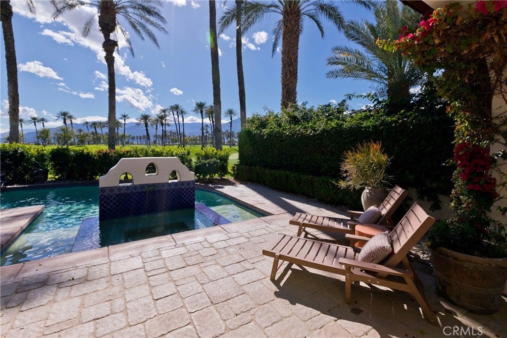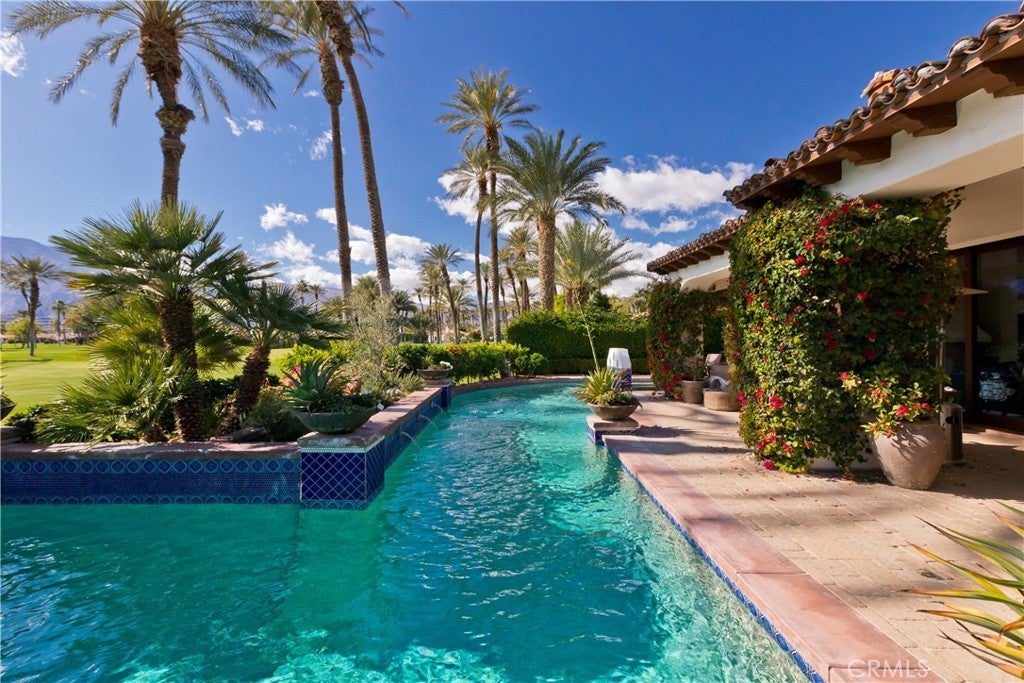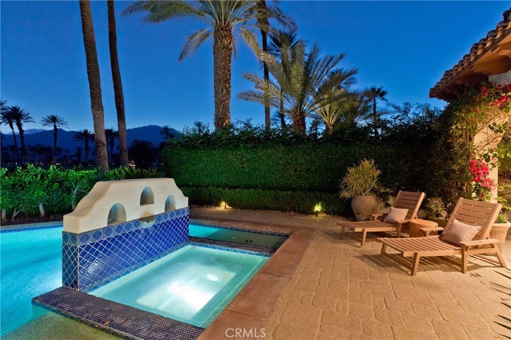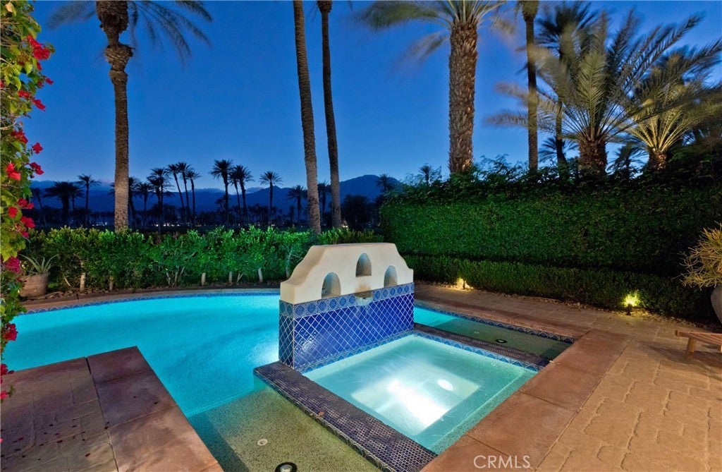 Rates VARY BY MONTH! THE PROPERTY HAS BEEN PROFESSIONALLY INTERIOR DESIGNED - NEW INTERIOR PHOTOS SOON! Imagine waking up to breathtaking mountain vistas, the emerald expanse of a world-class golf course unfolding before you, and the sun warming your skin through expansive glass doors. This Spanish-style masterpiece, nestled within one of the finest Players Golf Clubs in the country, isn't just a home; it's an invitation to a life of tranquility and unparalleled luxury. Step into a soaring cathedral ceiling crowned with rustic wood beams, where the line between indoors and outdoors gracefully blurs. A wall of disappearing glass doors invites the desert in, painting your living space with the vibrant hues of the fairway and distant mountains. Gather around the oversized island in the chef's kitchen, Viking appliances glinting under the pendant lights, as you share laughter and stories with loved ones. The raised dining room, warmed by a crackling fireplace, promises elegant evenings under a starry sky. Your private sanctuary awaits in the oversized primary suite. Wood beams add warmth, while dual doors open to reveal a breathtaking panorama of the pool, spa, golf course, and mountains. Start your day invigorated by this vista, the desert air whispering through palm trees. This home caters to every desire. A private guest ensuite with its patio offers a peaceful retreat for visitors. The casita, accessible from the courtyard, beckons with a fireplace, kitchenette, and family room – the perfect haven for creating lasting memories with loved ones. Outside, your desert oasis unfolds. Bask in the sun on the covered patio, the scent of blooming bougainvillea filling the air. Take a refreshing dip in the private pool, warmed by the desert sun, or melt away stress in the soothing embrace of the spa under a canopy of stars. This is more than just a home; it's an experience. It's the thrill of teeing off on a championship course, the serenity of watching desert sunsets paint the sky with fiery hues, and the joy of sharing laughter and connection with loved ones in your private paradise.