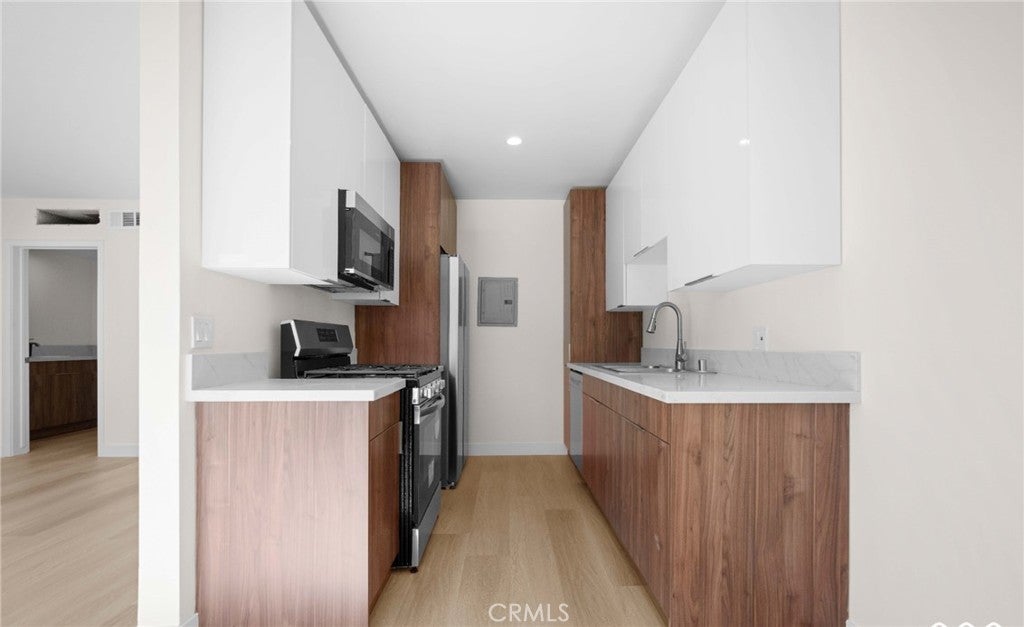 Experience the height of modern comfort in this beautifully remodeled 2-bedroom, 1-bathroom residence located at 7961 Willis Ave in the heart of Panorama City. Meticulously upgraded with a designer’s touch, this turn-key apartment features an open and airy floor plan highlighted by brand-new premium laminate flooring, elegant recessed lighting, and a fresh, contemporary color palette throughout. The chef-inspired kitchen is a standout, boasting custom-built cabinetry and a full suite of brand-new stainless steel appliances, including a stove, refrigerator, and dishwasher. Both bedrooms offer generous natural light and ample closet space, while the renovated bathroom features crisp, modern fixtures. This move-in-ready home combines high-end finishes with a central location near local shopping, dining, and major transportation hubs. Discover quality living at an incredible value in one of the valley's most convenient neighborhoods.