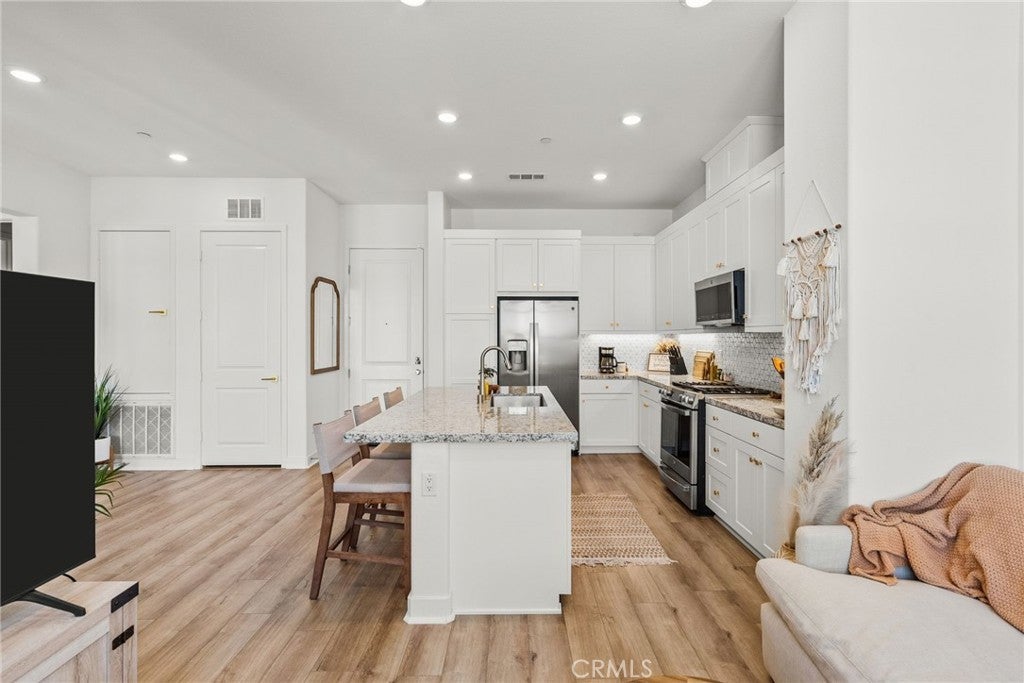 Welcome home to this gorgeous fully furnished (or can be unfurnished!) one bedroom condo in the newer Five Point community of Valencia! This beautiful unit is very spacious, and has everything you would need! There is a Ring Doorbell for enhanced security, along with other smart home features, including a blue-tooth stackable washer/dryer, refrigerator, microwave, and dishwasher. The home also has upgraded flooring and a stylish backsplash, adding a touch of sophistication to the living spaces. This newer community features a resort-style pool and spa that features cabanas and lounge chairs, park and garden areas and a clubhouse that you can use for personal or business use. Great location close to shopping, restaurants, schools and the 5 Freeway. HURRY! This amazing home will not last! Available April 1, 2026.