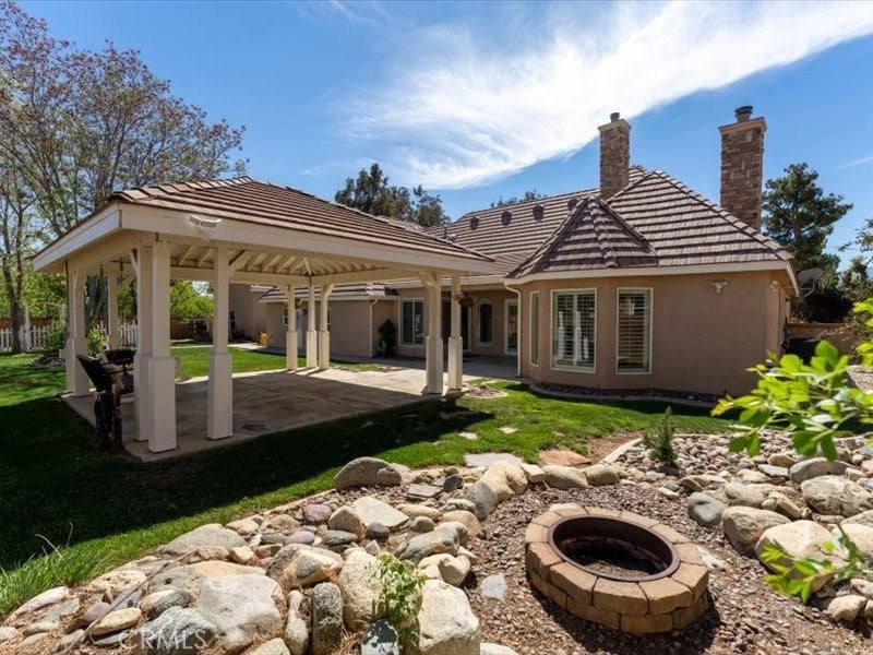 This beautiful Custom Equestrian Estates tudor home is situated on 1.58 acres and located at the end of a cul-de-sac, offering plenty of privacy and space. Built to last with high performance 2x6 exterior wall construction for enhanced structural integrity. The Peaked roofs and stone will amaze you. Interior travertine stone flooring, large tempered windows, high ceilings, and custom Avalon wooden shutters. Formal dining room, and large great room is complemented by a wood burning fireplace, open kitchen, and granite countertops. With a large center island, solar tube lighting, vegetable sink, and walk-in pantry. The Master Bedroom provides separate backyard access, and includes a large jacuzzi tub next to a two-way gas fireplace . The master walk-in large shower is equipped with dual shower heads and body spray, you will enjoy the two walk-in closets that have a combined 200 sf. of space. Two large bedrooms are located on the opposite side of the house with walk-in closets and a Jack & Jill bathroom, each having their own dedicated sink and linen cabinet. The fourth bedroom also has a walk-in closet, outside entry/exit into the backyard, and a dedicated bathroom for a guest spending the night or a live-in relative. The home is equipped. with a hot water circulator-providing for instant hot water. Room to Exercise (spin biking, yoga, etc) is ample in the gameroom that leads to the first garage where you can store your bikes, and/or park your motorcycle and vehicle. This property also hosts two detached garages, both 2x6 construction. The first 20 X 30' (600 sf) garage is located next to the house and the second garage with a dedicated entry/exit off Ave M-8 is 70'X 35'(2,450 sf) plenty of room to store your vehicles, boats and toys; or space to operate a business. Also has its own dedicated RV dump station and 30 AMP RV electrical hookup with water access . Original certified architectural and engineering plans will be sold with the home.