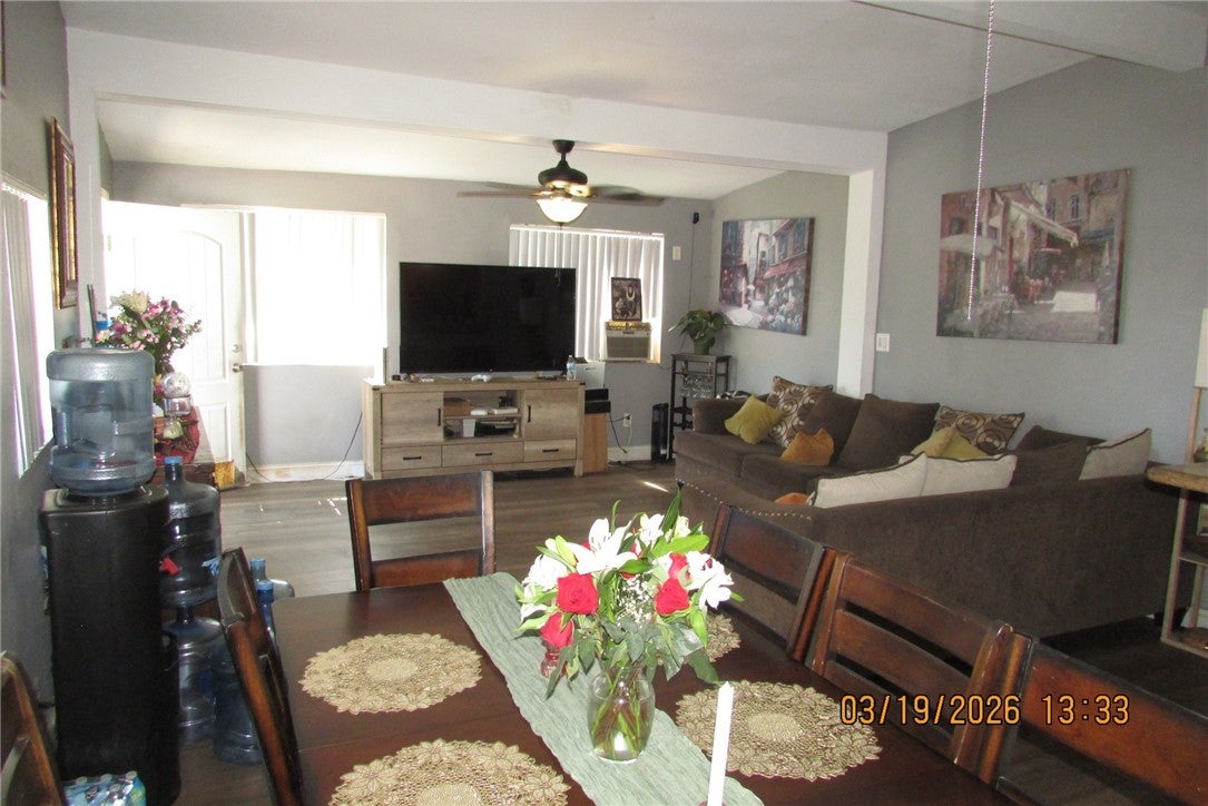 3 Bedrooms and 2 baths home, all laminated flooring except bathrooms. Master bedroom has its own bath plus sliding door leading to the back yard. Living room and master bedroom have window air conditioning units. Kitchen amenities are granite counter tops and Oak kitchen cabinets. open kitchen to dining area and living room. This home offers an extra 2 bonus rooms and an extra ¾ bath with a separate entrance unknown if with city permits. It also has 2 car attached garage semi converted to a recreation room with a ¾ bath, easy to convert it back to a garage, garage door has its hardware and can be opened. Lots of space to park extra cars or RV, Driveway goes all the way to back yard. There are 2 storage rooms in back yard. This gated property is close to Costco, Lowes shopping center and schools. Come and see it, you won’t be disappointed.
