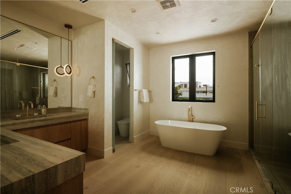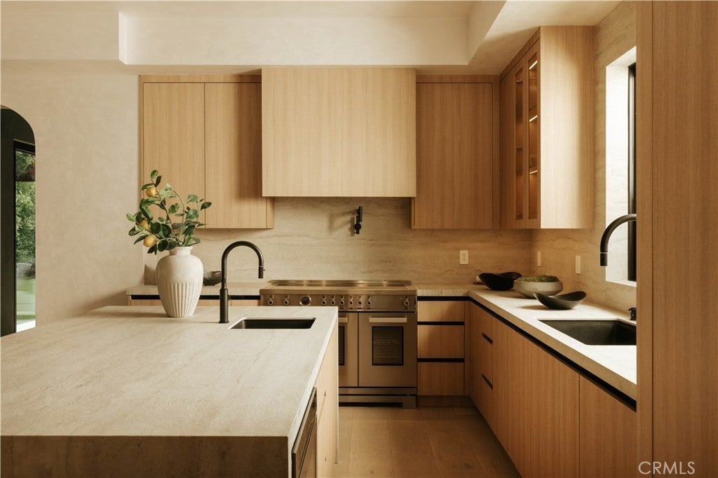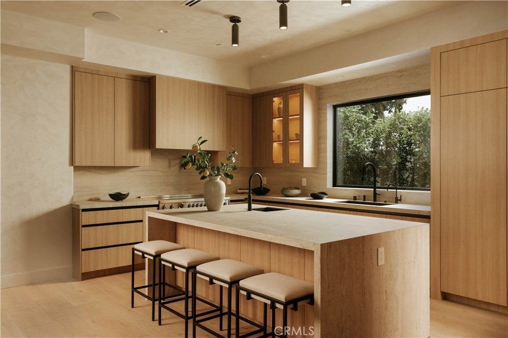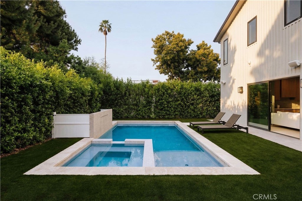 Situated on a quiet, tree-lined street in prime Sherman Oaks South of the Boulevard , this newly constructed residence offers 4,700 sqft of refined living with 6 bedrooms and 6.5 bathrooms, set on a 6,997 sqft lot. A warm, organic palette defines the interiors, where wide-plank flooring, soft plaster walls, and custom millwork create a cohesive, elevated aesthetic. Multiple living areas provide an open-concept layout that is both functional and intentional—ideal for entertaining or everyday living. Expansive sliding glass doors open to the backyard, creating a seamless indoor-outdoor flow. A designer kitchen featuring custom wood cabinetry, integrated appliances, and an island with seating. Each bedroom is en-suite, offering comfort and privacy throughout. The primary suite is designed as a true retreat, featuring a fireplace, oversized walk-in closet, and a spa-inspired bath complete with a freestanding soaking tub, dual vanities, and a large walk-in shower with dual rainfall heads. An attached ADU with its own kitchenette and living space offers additional flexibility—ideal for guests, extended family, or a game room. The backyard is private and resort-like, with a pool and spa, outdoor lounge areas, and mature hedging for privacy—ideal for both relaxing and entertaining. Located just moments from Ventura Boulevard’s premier dining, shopping, and cafés, including the Sherman Oaks Galleria, Whole Foods, and Erewhon, with convenient access to the 101 and 405 freeways.