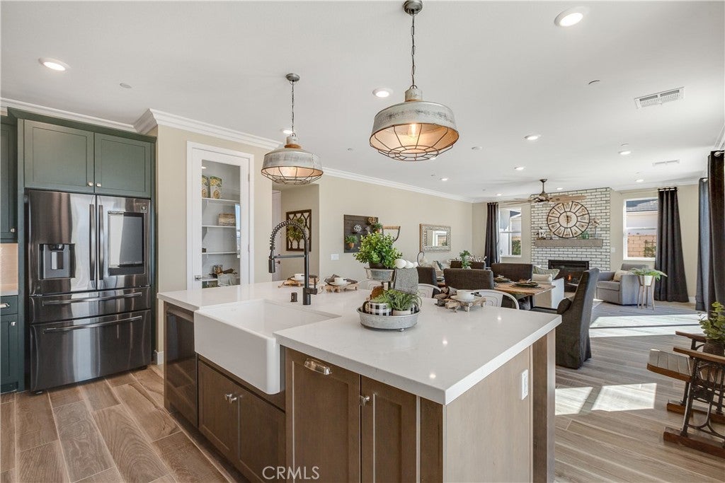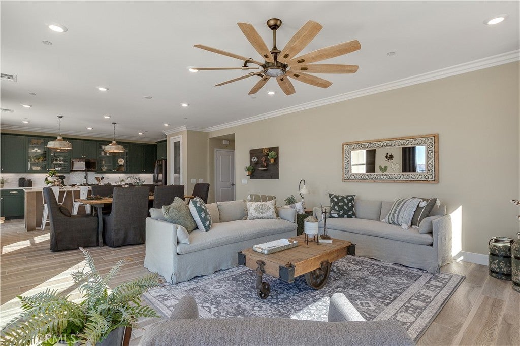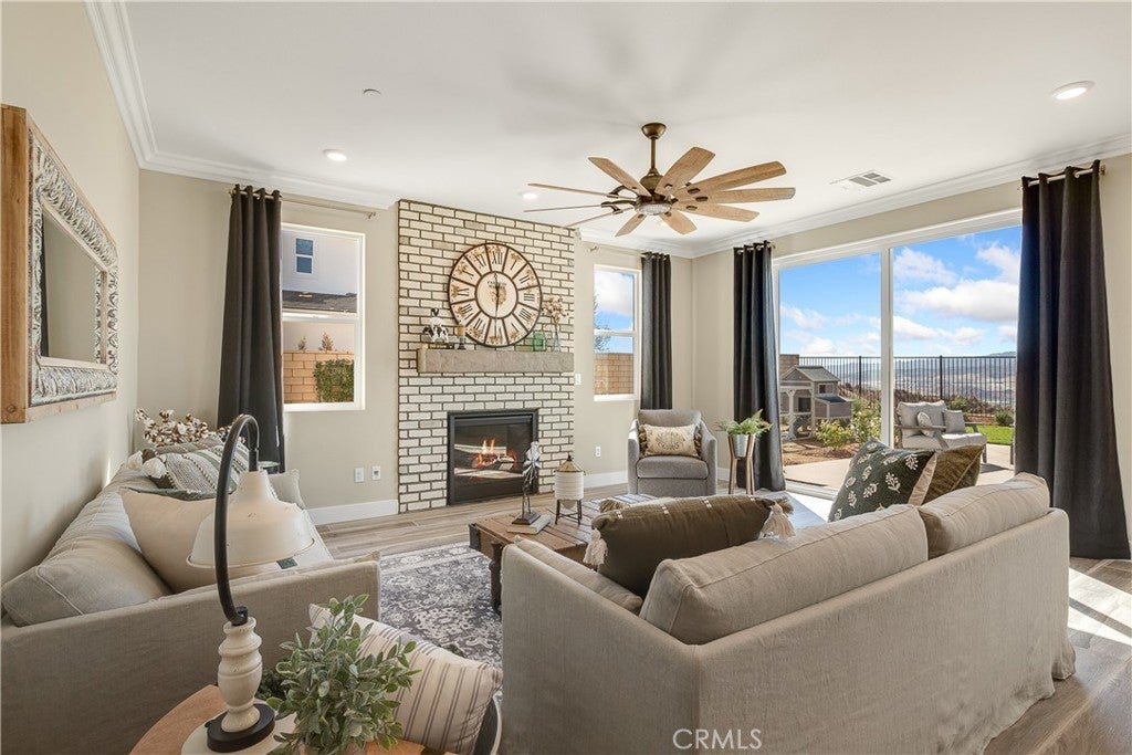 Welcome to Williams Ranch a community designed with you and your lifestyle in mind. Live on a 430-acre master planned community nestled between the Sierra Pelona Mountains. Come and be a part of a community that has an exceptional recreation center, junior-size Olympic swimming pool, and an outdoor kitchen. Here you will be surrounded by abundant open space hiking trails, numerous pocket parks, entertainment amphitheater, large citrus orchards, and working vineyards. This beautifully upgraded MODEL HOME showcases designer-selected finishes and thoughtful details throughout. This residence offers approximately four bedrooms, loft, and three bathrooms, providing flexible living options for a variety of lifestyles. The open-concept great room features two large sliding glass doors that enhance natural light and create a seamless indoor-outdoor flow. The kitchen and living areas are designed for both everyday living and entertaining. Upstairs, the primary suite includes a private balcony positioned to take advantage of the surrounding views. Additional bedrooms and a versatile loft offer space for work, relaxation, or play. This professionally designed model home highlights elevated finishes and a well-appointed layout.