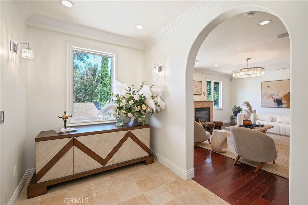 Beautiful Tuscan Villa, on a tree lined culd-de-sac walking distance to Ventura Blvd. Excellent central location near the Hollywood Bowl, all the great Hollywood restaurants, entertainment venues and the restaurants on Ventura Blvd. Large chef remodeled kitchen with plenty of storage connect to ample dining room with mountain views. Living Room is elegant with wood floors and cozy decorative fireplace. Also at this level there is a flex room that can be used as a bedroom or office with walk in closet and a full bath next to it. Next level has all large bedrooms with private bathrooms and large closets. Backyard is low maintenance with room for family dinners and entertainment with plenty of privacy. Location is amazing with quick access to the 101 to connect to LA or the Valley.