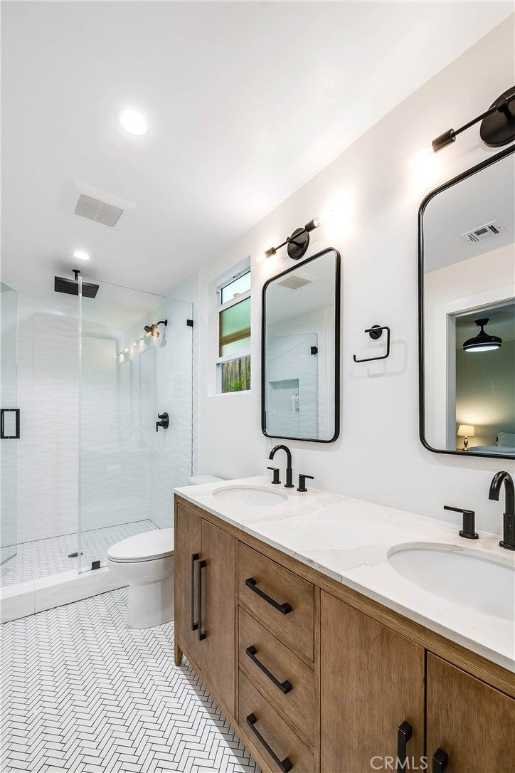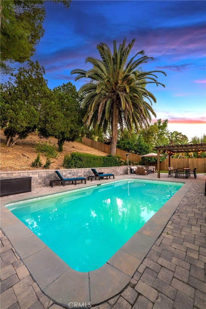 Centrally located in one of West Hills’ most desirable neighborhoods, this home offers a rare combination of convenience and WALKABILITY, with easy access to nearby parks, schools, dining, and everyday essentials, all set on a quiet residential street. The property features OWNED TESLA SOLAR (8.16 kW) producing over 17,400 kWh ANUALLY, and equipped with a BACK UP BATTERY!. The backyard is designed for both relaxation and entertaining, with a PAVER PATIO, WOOD PERGOLA- wired for sound and lighting, and a newly RESURFACED POOL with up to 10-foot depth suitable for a diving board. Synthetic TURF and mature fruit trees, including ORANGE AND GRAPEFRUIT, complete the outdoor space. Inside, the home has been updated top to bottom with ENGINEERED HARDWOOD FLOORING custom shaker cabinets with soft-close hinges, QUARTZ countertops, and a large kitchen island. The kitchen is equipped with new Samsung appliances and a stainless steel sink. Additional features include a wood-burning fireplace, DUAL-PANE windows, a new ABS SEWER LINE, and generously sized bedrooms. The primary suite offers dual sinks, a large WALK-IN SHOWER with a RAIN SHOWERHEAD, and dual closets. 7112 Darnoch is a short walk to Mae Boyar Park and Pomelo Community Charter School, with nearby access to local dining and cafés. Daily conveniences are minutes away at Pavilions, and major shopping destinations like Westfield Topanga and Fallbrook Center. Come see this well-located, move-in ready home with strong indoor-outdoor living and energy efficiency in a prime West Hills setting.