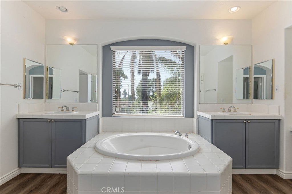 Nestled within the highly coveted gated community of Belcourt in Porter Ranch, this newer construction residence (built in 1998) offers an impressive 3,709 square feet of refined living space. Designed for both comfort and entertaining, the home features multiple en suite bedrooms, including a grand primary suite with a spacious bathroom showcasing dual vanities separated by a soaking tub and separate walk-in shower. The center island kitchen with breakfast bar seamlessly overlooks the inviting family room, complete with a striking fireplace—creating the perfect setting for everyday living and gatherings alike. Elegant formal living and dining rooms provide additional space for hosting, while the wrought iron staircase adds a sophisticated architectural touch. Originally built as a three-car garage, the third bay has been thoughtfully converted into a versatile space ideal for a home office, music studio, or private retreat. Hard wood floors adorn many spaces in the home. Outside, the low-maintenance yard with covered patio offers the perfect balance of relaxation and functionality—ideal for outdoor dining and entertaining without the burden of extensive upkeep. This exceptional home is further enhanced by its location within a top-rated school district, including highly sought-after charter schools such as Beckford Elementary, Nobel Middle School, and Granada Hills Charter High School.