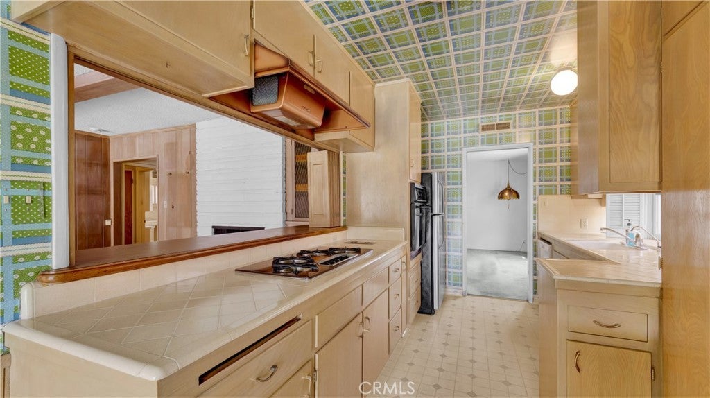 • Interior FeaturesBeamed Ceilings, Built-in Features, Breakfast Area, Ceiling Fan(s), Tile Counters, Unfurnished, All Bedrooms Down, Galley Kitchen