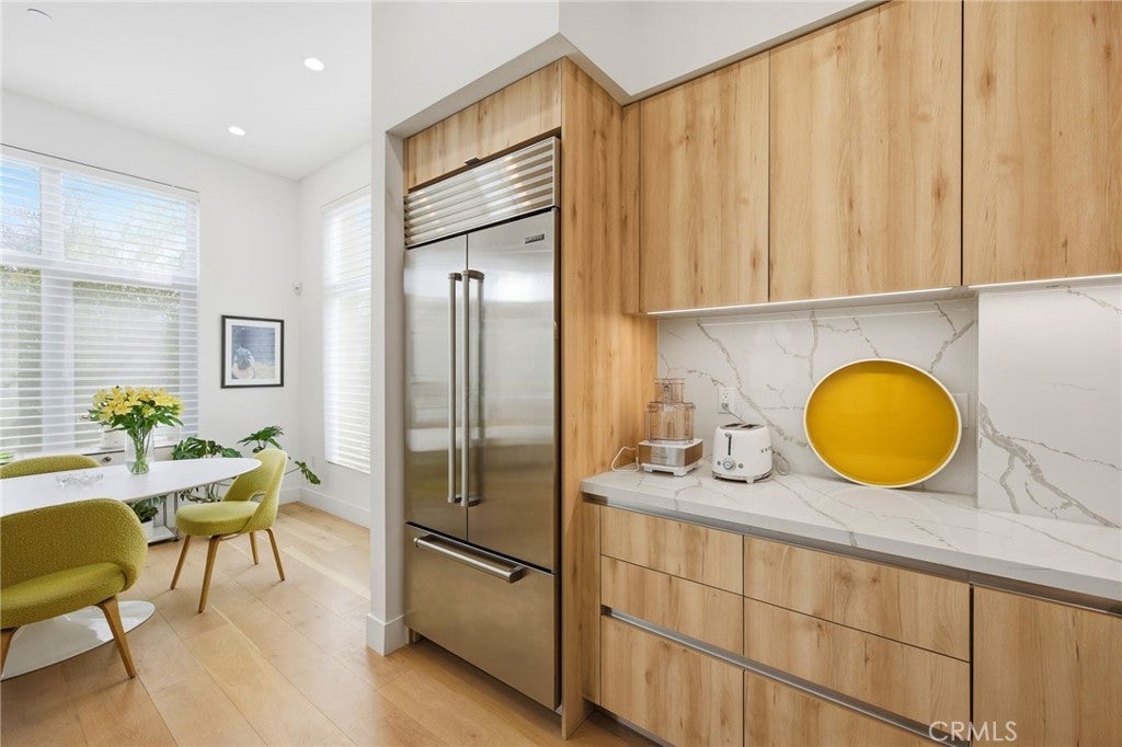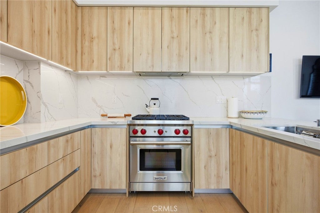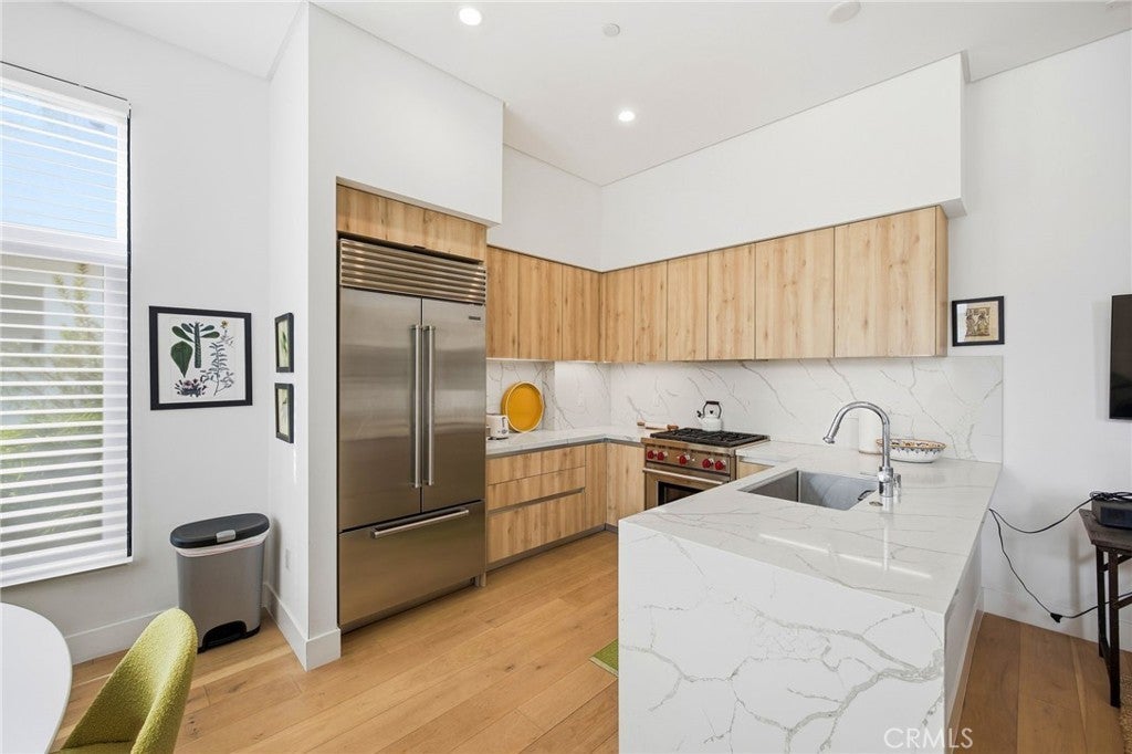 Fully furnished with all utilities included, 1-bedroom, 1-bathroom residence at The Del Mar in the heart of Pasadena, California — a boutique 55-unit development completed in 2021 where modern design meets everyday convenience. Unit 103 stands apart in the building's one-bedroom inventory with soaring ceilings and direct terrace access to private garden courtyards, a combination not found in any other unit at this address. The kitchen is outfitted with a Sub-Zero refrigerator, Wolf stove and oven, quartz countertops, and designer cabinetry — a professional-grade setup rarely found in a rental. Clean lines, high-quality fixtures, and warm finishes carry throughout the living spaces. The unit comes fully furnished and move-in ready, with all utilities included in the monthly rent. In-unit washer and dryer, central HVAC, and one assigned underground parking space in the gated subterranean garage are included. Building amenities include a resort-style swimming pool, fitness center, BBQ area, secure gated access, on-site security, and a mail room. Unit 103 sits on the first floor with a private walk-up patio that provides both direct garden access and a dedicated outdoor living area — an uncommon feature for an urban one-bedroom. The Del Mar Pasadena places you steps from Lake Ave, Old Town Pasadena's dining and retail corridor, Trader Joe's, Whole Foods, and Erewhon. Pasadena's thriving business and cultural district surrounds you, with the Metro A Line, the 110 and 210 freeways, and the Pasadena Civic Auditorium all within easy reach. All utilities included. Fully furnished. One assigned underground parking space. Looking for 6 month or less lease terms.
