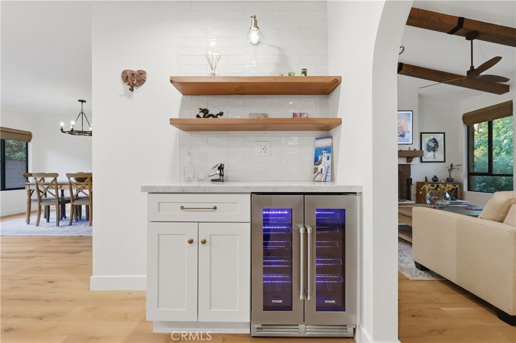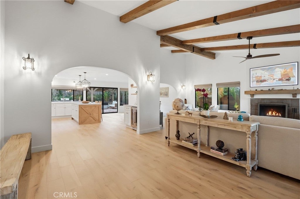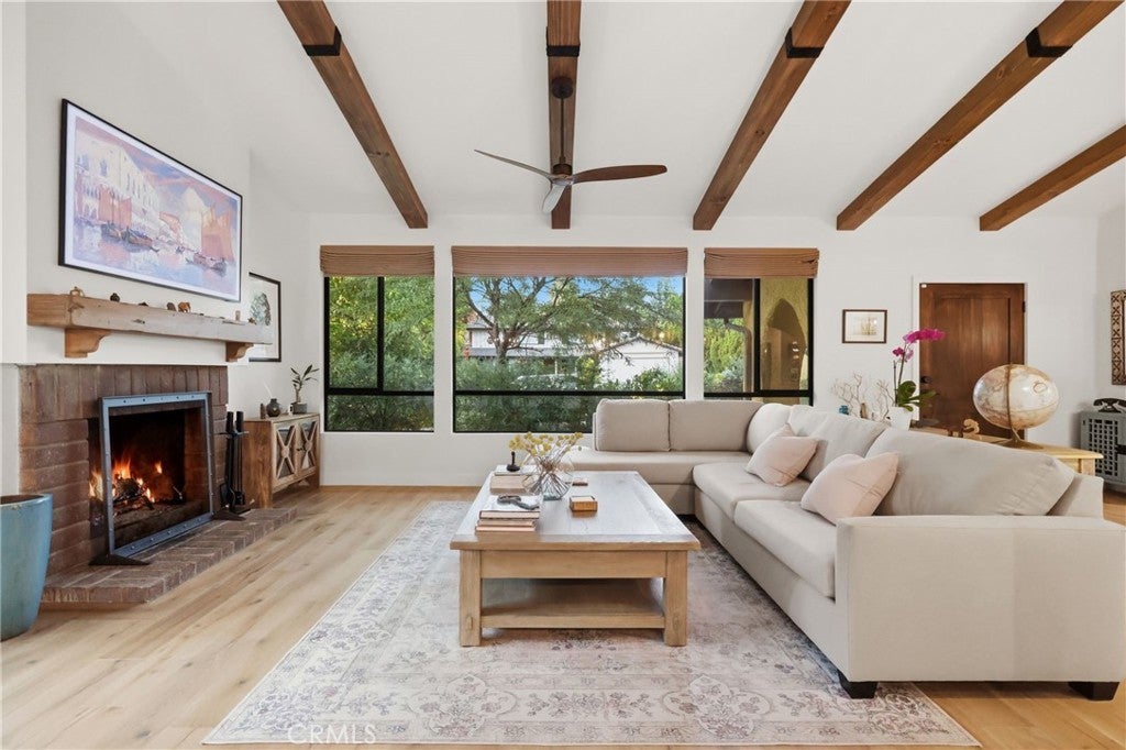 In the premium north side of Mulwood, this home occupies one of the neighborhood’s most sought-after streets. Set on a rare flat hilltop (rather than a hillside), it offers underground utilities and an exceptionally quiet setting, well removed from main roads. A sprawling single-story residence, it features 4 bedrooms, 2.5 bathrooms, and a 3-car garage. Completely reimagined in 2022 through a fully permitted, plan-check-level renovation, the residence was rebuilt nearly from the ground up while preserving its original Spanish character. The result is a sophisticated modern Spanish residence with five-star resort ambience. Every single system is new throughout— electrical, plumbing, HVAC, drainage, irrigation, and sewer. The open layout features arched openings, vaulted ceilings, expansive windows, and seamless indoor-outdoor living, with greenery views from nearly every angle. Modern functionality blends seamlessly with old-world charm: motorized rustic Roman shades, vintage iron lighting with smart controls, and smart irrigation for the potted olive trees. Energy-efficient design keeps the home comfortable through peak summer heat, while the lush yet highly drought-tolerant landscaping requires minimal maintenance. High-quality finishes include architectural Milgard bronze aluminum windows, oak flooring, Carrara marble in the kitchen and baths, a Wolf range, Hansgrohe and Grohe fixtures, Toto toilets, Baldwin hardware, reclaimed Chicago brick hardscape, and reclaimed Spanish terracotta tile in the bathrooms. A professionally executed, fully permitted renovation of this scale and quality—built to Calabasas’ strictest standards—would easily cost well into seven figures to replicate in today’s market.