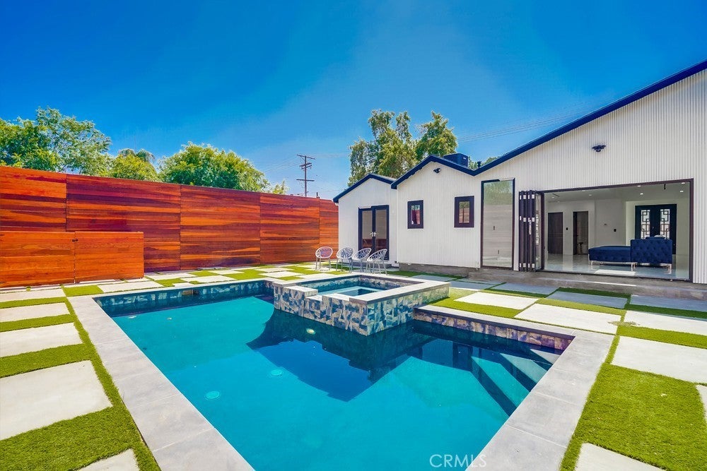 Luxury Marketing Version Luxury Home – Fully Furnished – Amestoy Estates, Encino This beautifully designed 4 bedroom, 3 bathroom home offers high ceilings, an open floor concept, and a luxury German kitchen with Thermador appliances and custom high-end finishes throughout the home. The property is fully furnished with modern designer furniture, making it completely turnkey and move-in ready. The backyard features a resort-style pool and jacuzzi, creating the perfect indoor-outdoor California lifestyle. Located in the highly desirable Amestoy Estates neighborhood, close to top schools, shopping, and restaurants. Luxury, location, design, and fully furnished convenience — all in one exceptional property.