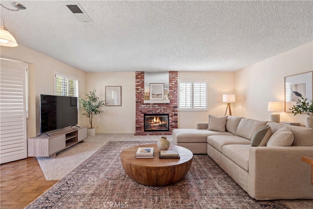 Centrally located and full of charm, this beautiful home offers great curb appeal and a highly functional layout. Featuring a desirable 3-car garage, there's plenty of space for vehicles, storage, and more. Step inside to a formal living room that seamlessly flows into the formal dining area, highlighted by vaulted ceilings that create an open and airy feel. The kitchen showcases rich wood cabinetry and opens to an informal dining area and inviting family room, complete with a classic used-brick fireplace--perfect for cozy evenings or entertaining guests. The spacious primary suite features vaulted ceilings, three closets, and a private bathroom with dual sinks, offering a comfortable and relaxing retreat. Secondary bedrooms are nicely sized, providing flexibility for family, guests, or a home office. The backyard is designed for enjoyment with block wall fencing for privacy, a brick-lined covered patio, and lush landscaping that creates a peaceful outdoor setting. Additional highlights include newer central air, new carpet, and plantation shutters throughout, adding both comfort and style. This well-maintained home is move-in ready and ideally located near shopping, dining, and everyday conveniences. Don't miss the opportunity to make this exceptional property your own!