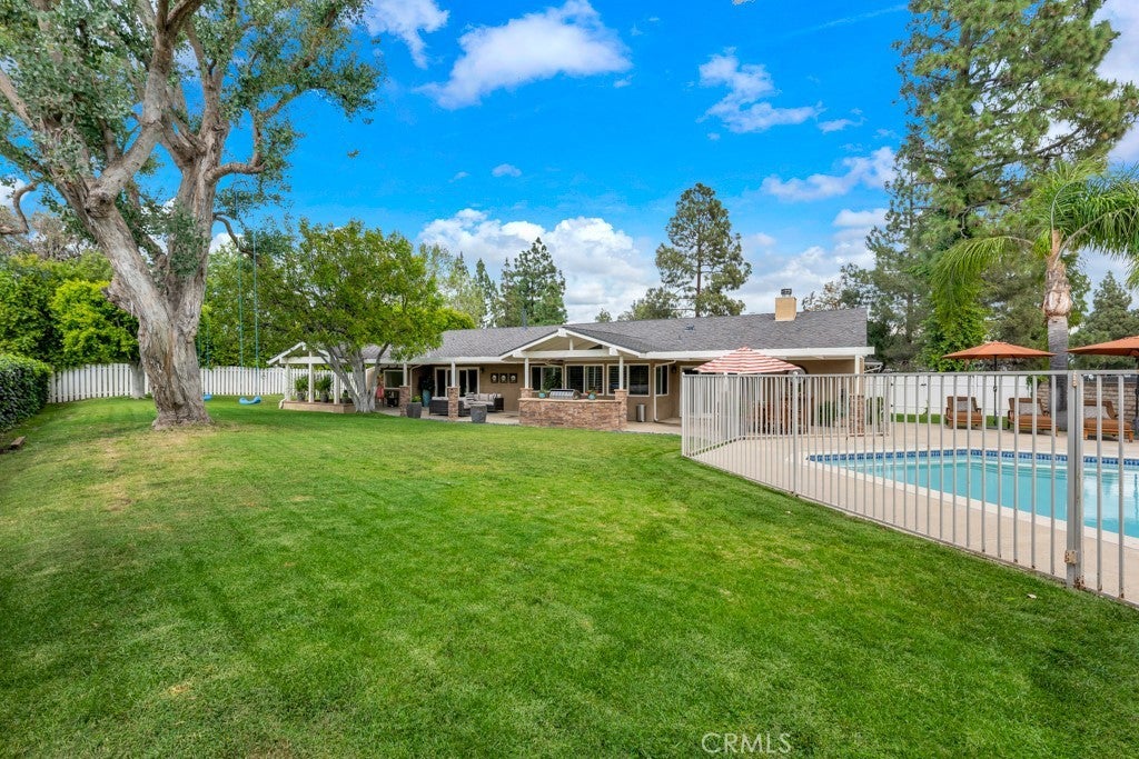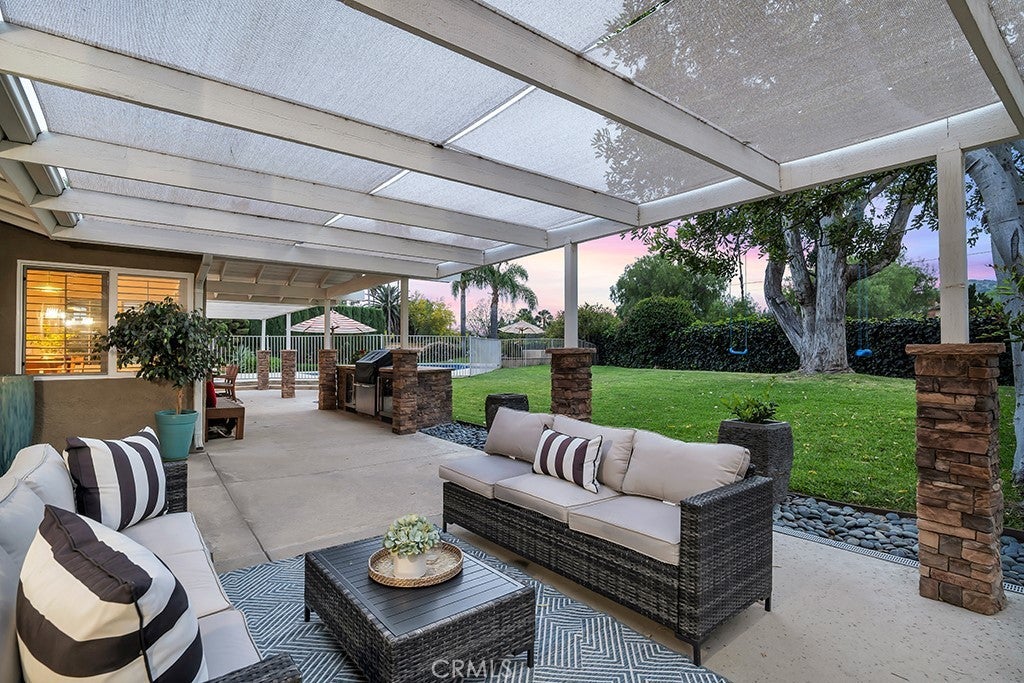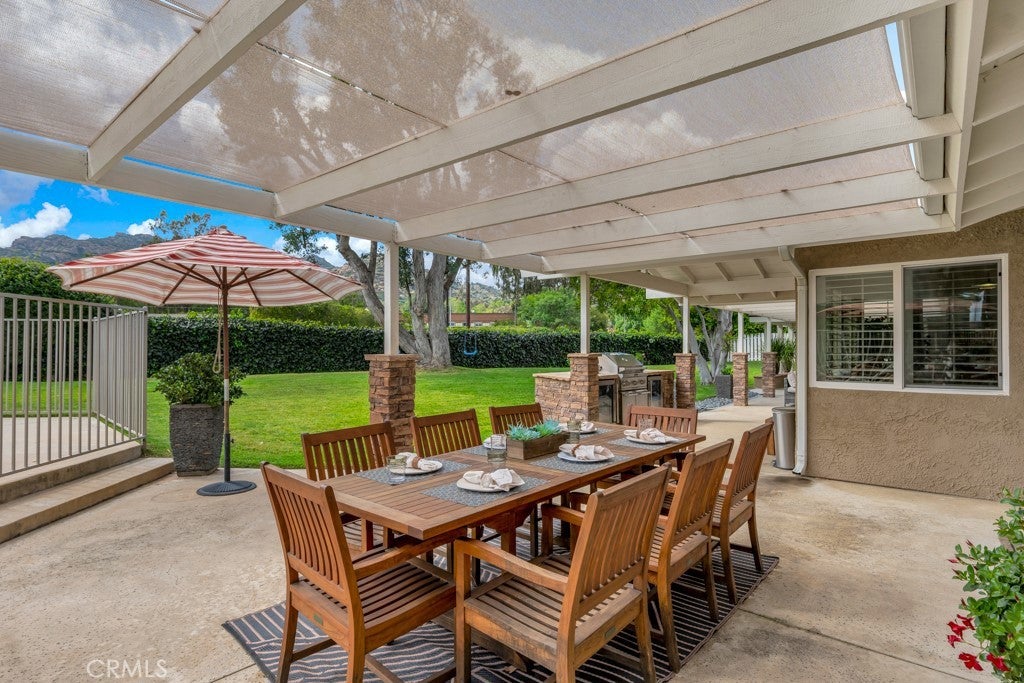Located in the highly desirable Carriage Estates community west of Topanga, this exceptional single-story home offers the perfect blend of elevated everyday living and true entertainer’s appeal. Situated on a nearly half-acre, fully usable lot, properties like this...with space, privacy, and flexibility—rarely come to market. The home features a bright and open floor plan with soaring ceilings, abundant natural light, and hardwood flooring throughout. Thoughtfully upgraded with custom cabinetry throughout the home, including the kitchen, along with extensive storage and a striking double-sided fireplace, the residence blends warmth, functionality, and design. An integrated indoor and outdoor sound system enhances both daily living and entertaining. Designed with lifestyle in mind, the layout flows seamlessly to a private resort-style backyard featuring a gated pool and spa, an expansive covered patio spanning the entire rear of the home, and a built-in barbecue with refrigerator;ideal for hosting, outdoor dining, and enjoying warm California evenings under mature shade trees with stunning sunset views of the Chatsworth Hills. A true highlight of the property is the fully finished four-car garage, complete with high-quality built-in cabinetry. This versatile space offers incredible flexibility...perfect for a car enthusiast, workshop, home gym, creative studio, or additional lounge space. The spacious primary suite offers a large walk-in closet and a beautifully updated bathroom, while the additional bedrooms are generously sized and complemented by tastefully renovated bathrooms. Additional features include potential RV access and a setting that delivers both privacy and scenic beauty. Lovingly maintained and offered for the first time in over 20 years, this is a rare opportunity to own a standout home in one of Chatsworth’s most sought-after neighborhoods.