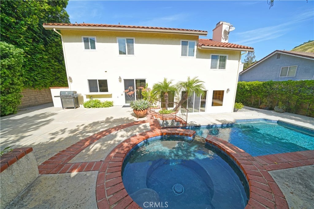 Truly spectacular West Hills pool home located in the highly desirable Castle Peak Estates and within the acclaimed Las Virgenes School District. Beautifully remodeled, this sun-filled 4-bedroom, 3-bathroom home features the largest and most sought-after Castle Peak floor plan, offering nearly 2,900 square feet of open living space. A fantastic home for entertaining, it also enjoys access to nearby walking and hiking trails for the perfect balance of luxury and lifestyle. Enter through custom glass doors into a grand foyer with soaring ceilings and immediately experience the home’s bright, elegant feel. Interior highlights include picture windows, a stunning custom fireplace that feels like a work of art, travertine floors, recessed lighting, dual-pane windows throughout, and a whole-house vacuum system for added convenience. The heart of the home is the showstopping chef’s kitchen, designed for both everyday living and entertaining. It features a 9-foot center island with prep sink, separate dining area, granite countertops, and top-of-the-line stainless steel appliances, including a built-in Dacor refrigerator, double ovens, warming drawer, 5-burner gas cooktop, and pot filler. The kitchen opens seamlessly to the enormous family room, complete with custom maple cabinetry, a second fireplace, and a powder room. Step outside to enjoy true resort-style living with a pool, spa, and four separate lounging and dining areas, all surrounded by lush landscaping for the perfect indoor-outdoor California lifestyle. Upstairs, the spacious primary retreat offers custom built-in cabinetry, a large walk-in closet, and a beautifully appointed bathroom with a soaking tub. The three additional bedrooms are all generously sized, along with an additional full bathroom. Additional features include a 3-car garage, abundant storage, light-filled interiors, and premium finishes throughout. This exceptional lease opportunity offers the perfect blend of modern comfort, style, and entertainer’s appeal in one of West Hills’ most desirable neighborhoods.