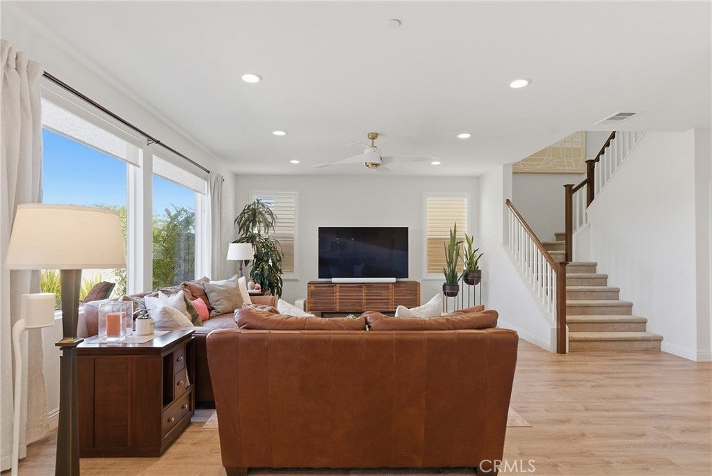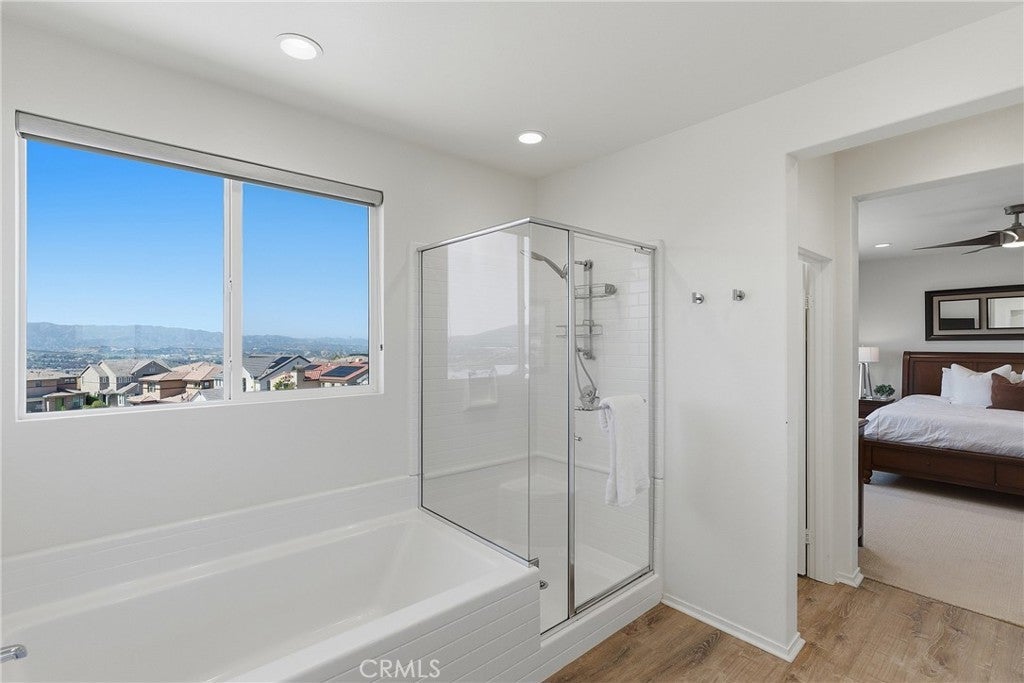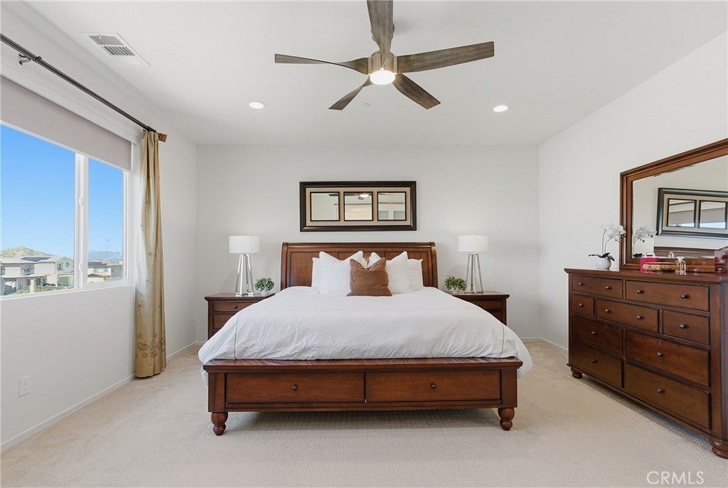 Welcome to a refined and elegantly upgraded residence, perfectly positioned in the highly desirable Skyline community of Santa Clarita, this beautifully upgraded home offers the perfect blend of modern luxury, comfort, and breathtaking views. Boasting four spacious bedrooms, a versatile bonus room, and generous living spaces throughout, this home is thoughtfully designed for today’s lifestyle.Step inside to an open-concept layout filled with natural light, enhanced by remote-controlled blinds and a calming neutral palette. Elegant hardwood flooring flows through the main living areas, complemented by upgraded carpet for added comfort. The expansive great room seamlessly connects to the dining area, creating an ideal space for everyday living and entertaining.The chef-inspired kitchen features sleek granite countertops, white shaker cabinetry, a large walk-in pantry, modern stainless steel sink, recessed lighting, and stylish pendant lighting—designed for both function and sophistication.Step outside to a beautifully manicured backyard with panoramic views of the Santa Clarita Valley, offering a serene setting for indoor-outdoor living, entertaining, or relaxing.Upstairs, an oversized loft provides flexible space for a game room, media room, or lounge. Three secondary bedrooms and a full bathroom offer ample room for family or guests. The private primary suite is a true retreat, featuring a sliding barn-style door leading to a spa-like bathroom with soaking tub, walk-in shower, dual vanities, and a custom walk-in closet.Additional highlights include a two-car garage with direct access, EV charger, owned solar, and premium upgrades throughout.Residents enjoy resort-style amenities including pools, clubhouse, gym, barbecue areas, splash pad, parks, and scenic hiking trails. Conveniently located near top-rated schools, shopping, and with easy access to the 14 Freeway, this home delivers an unmatched lifestyle of convenience, sophistication, and scenic beauty—where every day feels like a retreat.