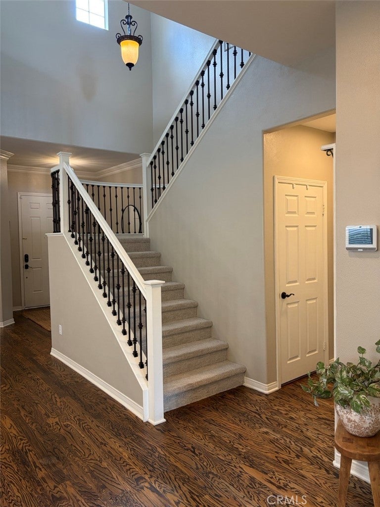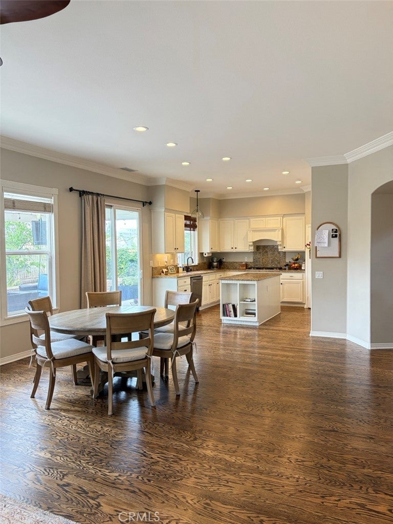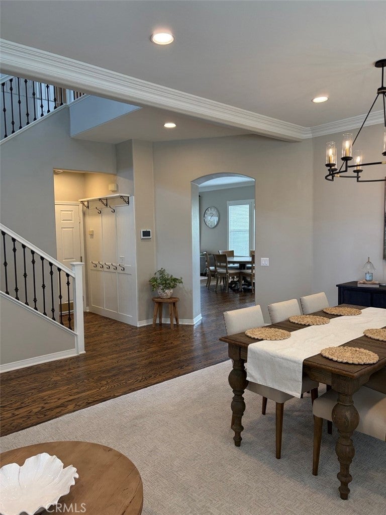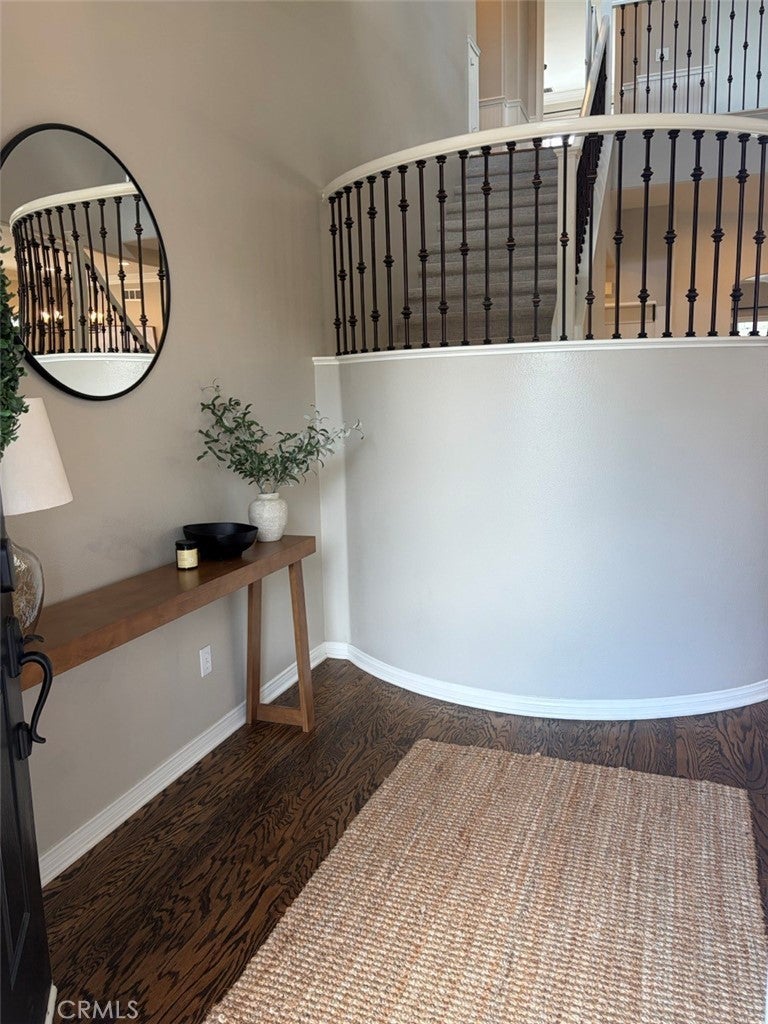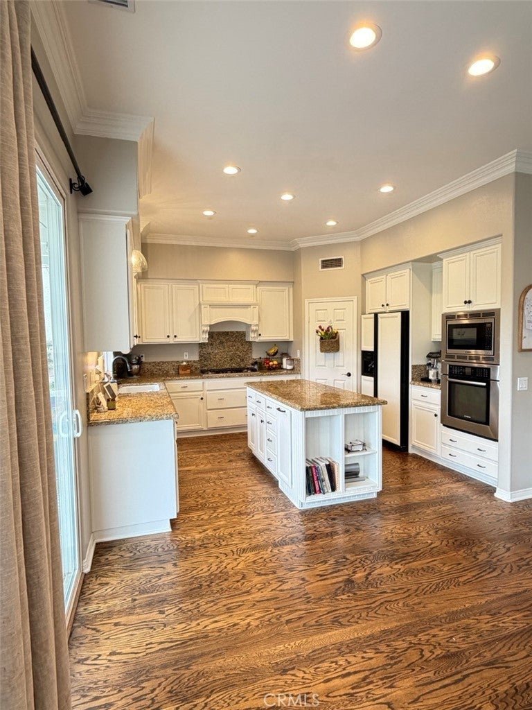 Nestled on a tree lined CUL-DE-SEC in a serene neighborhood, this distinctive home is a blend of elegance and comfort. The exterior boasts custom brick landscaping that frames the entrance beautifully. Inside features a unique ADDED LOFT for movie nights or play room for kids. Elegant HARDWOOD flooring, DUAL PANED windows and DUAL ZONED A/C ensuring both style and energy efficiency. Recently updated with new carpeting throughout. Custom crown molding and a striking rod iron staircase add character and sophistication. The kitchen is a CHEF'S DELIGHT with granite countertops complemented by white cabinetry. An island featuring built-in trash and shelving, ideal for storage and workspace. HIGH END BOSCH appliances including a convection oven, microwave, and gas cooktop. The GREAT ROOM is designed for relaxation and functionality with 10' ceilings, featuring custom-designed desk and cabinetry for workspace organization. Custom made TV cabinet and fireplace mantel crafted with STACKED STONE, creating a focal point for gatherings. The primary bedroom offers a tranquil retreat with crown molding and chair rail finishes that add a touch of sophistication. A barn door leading to a tranquil primary bathroom with sunken tub, highlighted with a crystal light fixture. His and Hers closets ensure ample storage space and privacy. Step outside to the BACKYARD OASIS, with no rear neighbor and featuring a custom-built stone fireplace, perfect for cozy outdoor evenings. A covered patio area ideal for el fresco dining and entertainment. Stone planters that enhance the landscape and natural beauty. This meticulously maintained home blends modern amenities with timeless design elements, making it a RARE FIND in the market. NO MELLO ROOS. Schedule a tour today to experience the unique charm and comfort of this home.