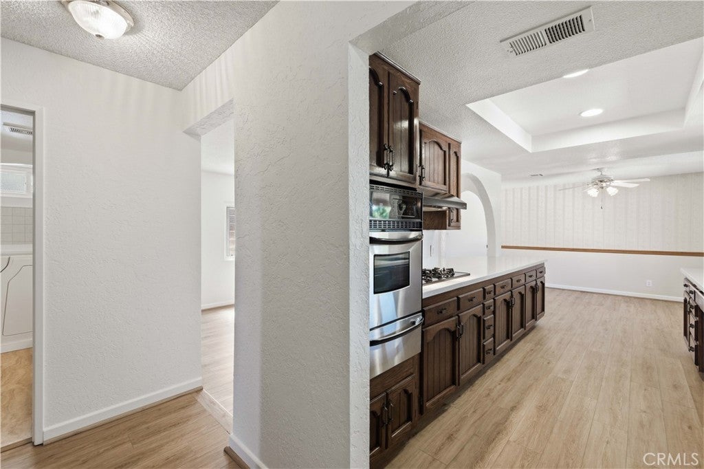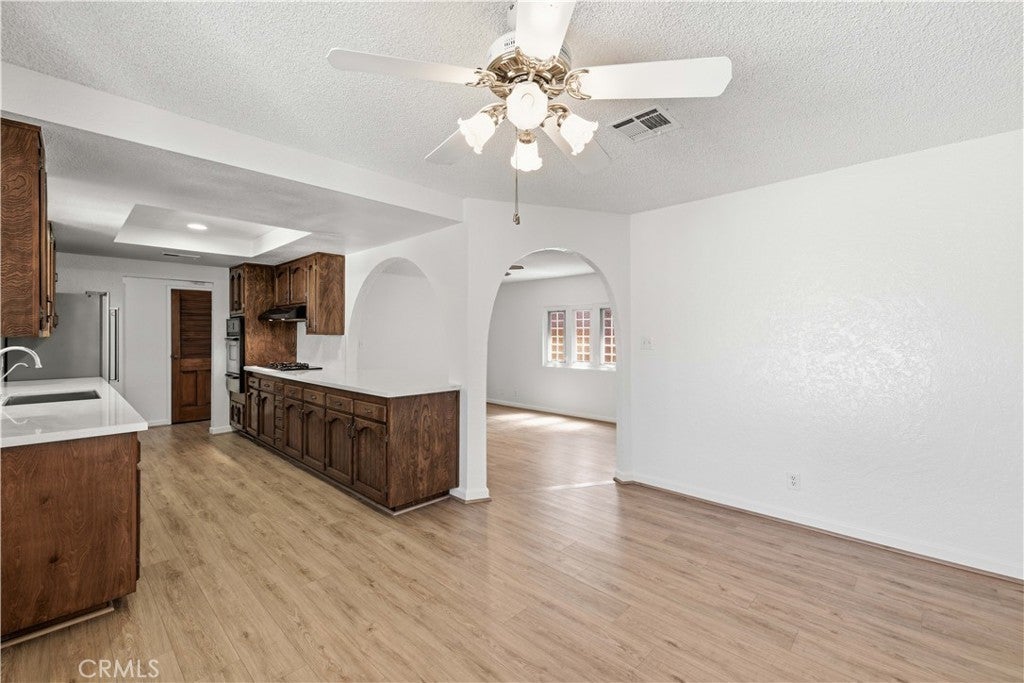 Welcome! This inviting single story home radiates country charm and modern updates throughout. Enjoy beautiful newer wood laminate flooring, plush new carpet, a remodeled kitchen. The remodeled kitchen features a Farmhouse-Style Sink, newer quartz countertops, stainless steel appliances and recessed overhead lighting. The Family/living room has a stone-faced wood burning fireplace. The home has newer, upgraded windows that flood the rooms with natural light (Living room windows have plantation shutters) and there is fresh paint in most of the rooms. Step out into the spacious 320-square-foot enclosed patio—perfect for relaxing or entertaining. Also included are ceiling fans to enhance comfort and convenience as well as a water softener. Fresh landscaping in the front adds wonderful curb appeal and the back is low maintenance as well. The perimeter fencing is block-wall with secure metal side gates. Here’s a nice little bonus, Lane Park is just a short walk where you can enjoy the open spaces, picnic tables and walking paths. This home blends classic warmth with contemporary style—don't miss your chance to make this 3 bedroom, 2 bath home yours! OH… and no HOA. Buyer to verify all.