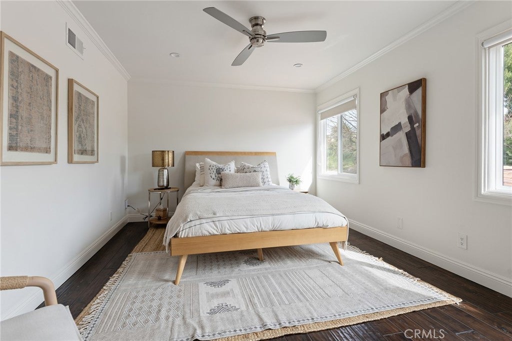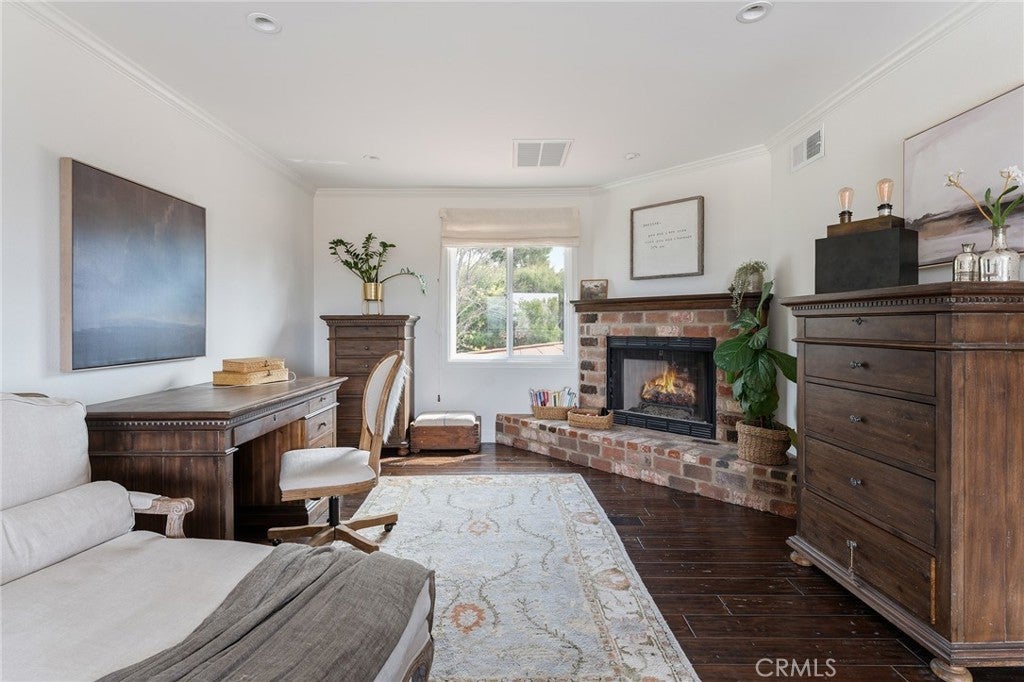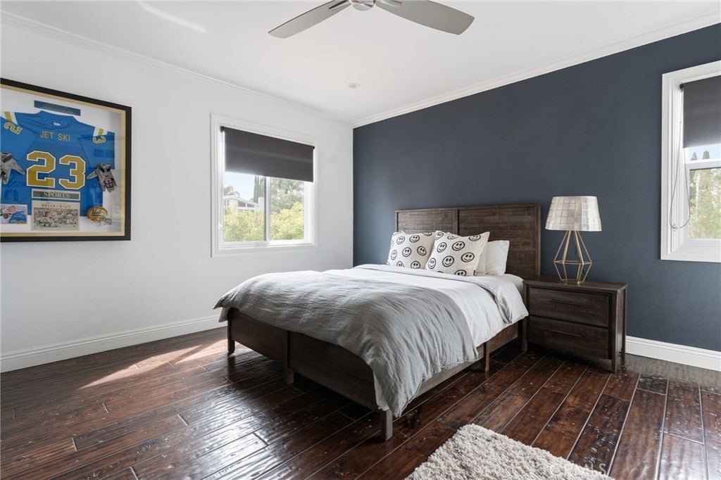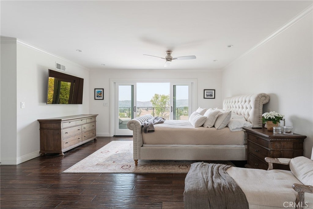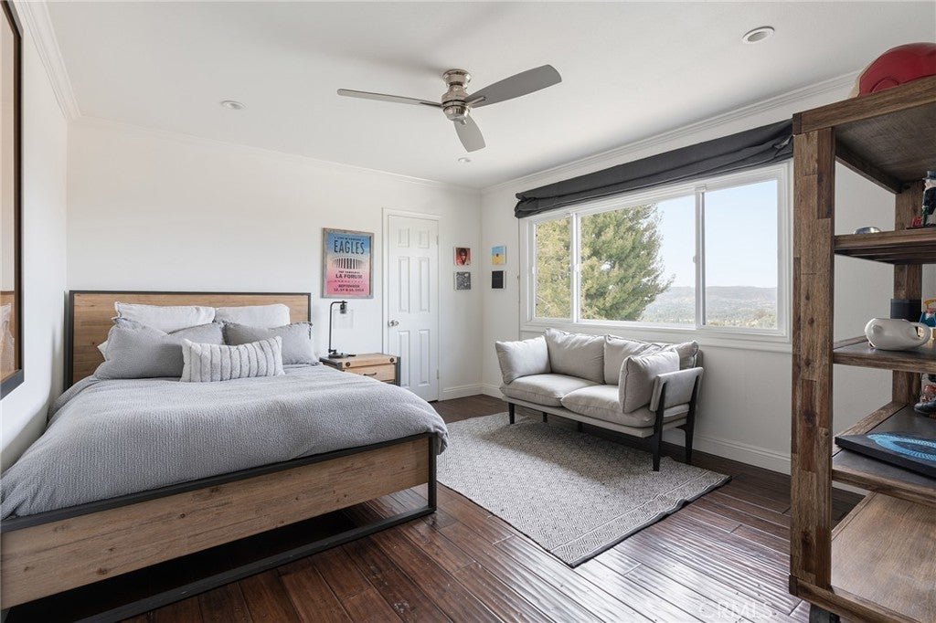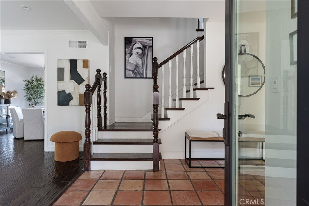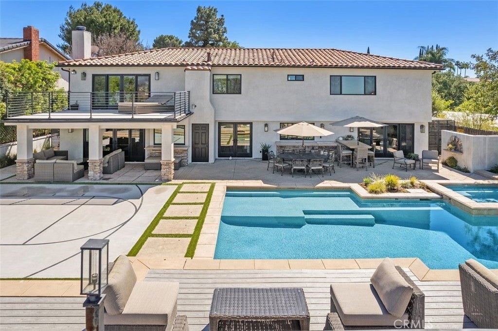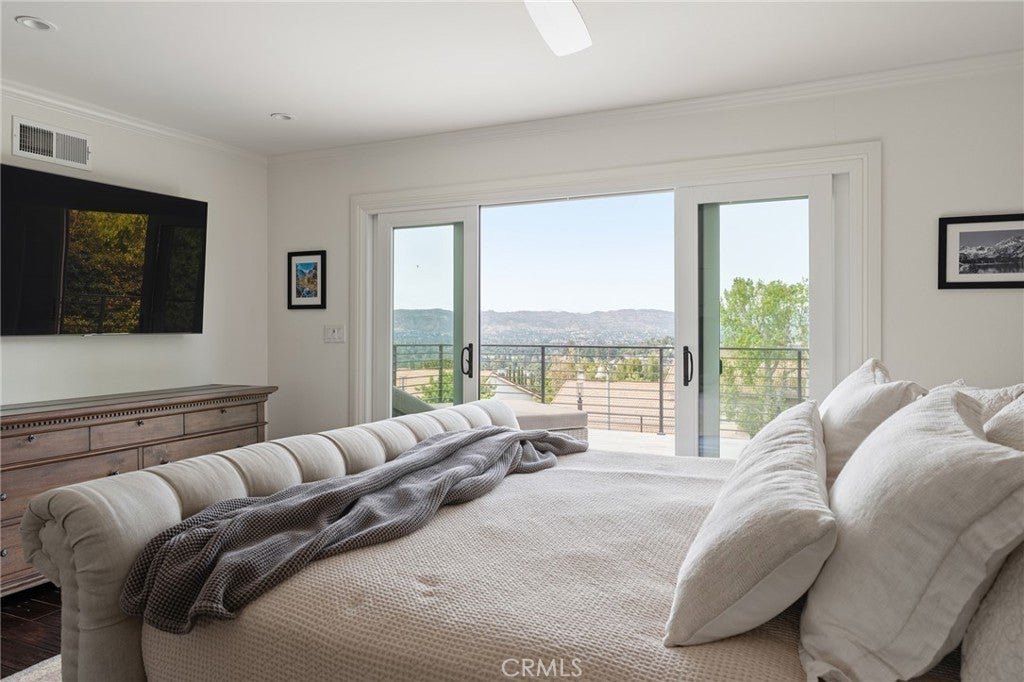 A rare offering in prime Mulwood with VIEWS, this warm Spanish style property is designed for effortless indoor-outdoor living and unforgettable entertaining. Spanning nearly 3,700 square feet, this home features 5 bedrooms and 5.5 bathrooms, including a desirable downstairs bedroom. The size, views and bedroom count are a unique find in Mulwood! A charming front courtyard welcomes you into a light-filled interior with several spots to gather, including a salon with a pool table and bar, a light and bright den and a more formal sitting area that flows into the courtyard. Newer glass doors throughout allow for a seamless flow to the outdoors. The layout is ideal for both everyday comfort and elevated entertaining. Upstairs, the spacious primary suite offers a private retreat with a cozy fireplace, walk-in closet, balcony, and sweeping views. Two of the three additional upstairs bedrooms include en-suite baths, providing both privacy and flexibility. The resort-style backyard is complete with a pool, oversized spa, covered patio, deck, half sport court, and a covered dog run - perfectly blending function and lifestyle. A finished 3 car garage currently serves as a gym, adding even more versatility. The downstairs bedroom has its own full bathroom and is ideal for multi generational living or an office. With its rare size, unique Spanish character, and exceptional indoor-outdoor experience, this is a standout offering in one of Calabasas’ most sought-after neighborhoods. Truly a special home ready for you to make lifelong memories! In close proximity to all three assigned public schools and Gelson’s shopping center, this property really has it all!