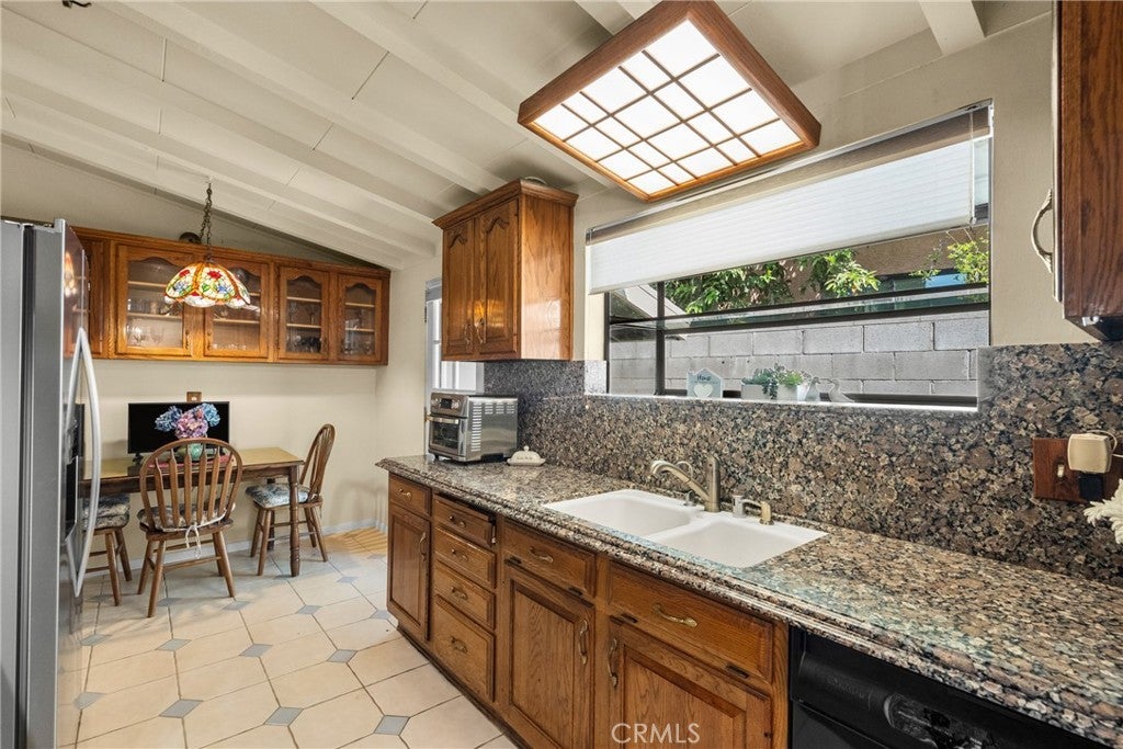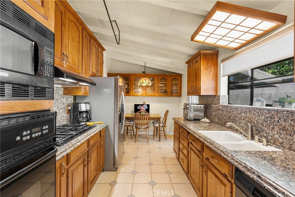 Step into this charming single-story home nestled in a beautifully established Granada Hills neighborhood. Offering 4 bedrooms and 2 bathrooms, one bedroom is currently used as a cozy TV/family room. A welcoming foyer opens into a bright living room that flows seamlessly into the dining area—perfect for gatherings. The kitchen features elegant granite countertops and a warm breakfast nook, ideal for savoring your morning coffee. The thoughtful floor plan places the private primary suite on one side of the home, with the additional bedrooms on the opposite wing for added comfort and privacy. Outside, the expansive backyard provides an excellent setting for entertaining friends and family or simply relaxing in your own outdoor retreat. A long driveway leads to a detached two-car garage, offering ample parking and storage. Conveniently located near shopping, dining, and easy freeway access, this home blends comfort, functionality, and an unbeatable location.