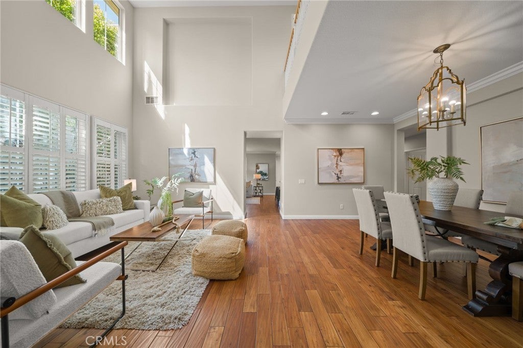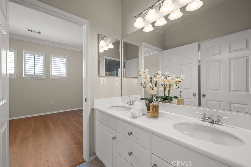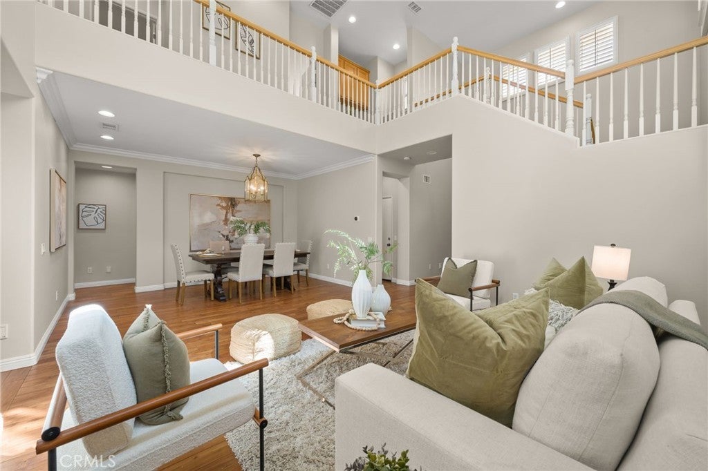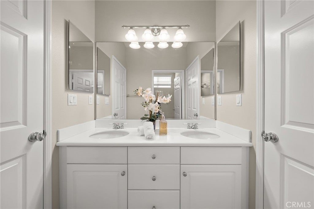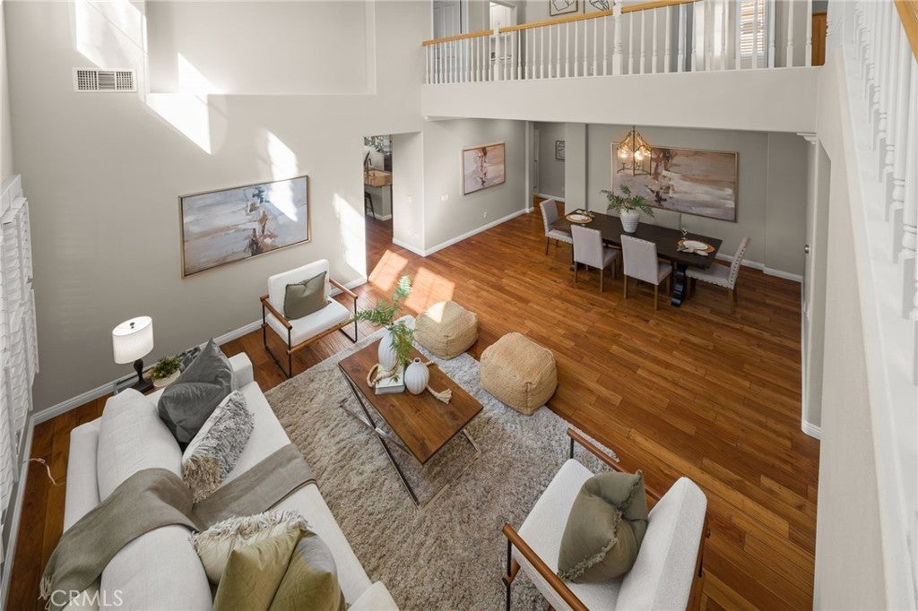 Welcome to this beautifully updated 5-bedroom, 3-bathroom home located in the highly desirable gated Sorrento community of Porter Ranch, featuring one of the lowest HOA dues in the area. Offering approximately 2,800+ sq ft, this home presents exceptional value as one of the lowest priced 5-bedroom homes currently available in Porter Ranch. Recently upgraded with fresh interior paint and brand-new flooring upstairs, the home offers a bright and functional open floor plan. The main level features high ceilings, a formal dining area, and a kitchen that opens to the family room—ideal for everyday living and entertaining. A downstairs bedroom and full bathroom provide flexibility for guests or a home office. UUpstairs, the spacious primary suite serves as a private retreat with a walk-in closet and en-suite bathroom. Secondary bedrooms are generously sized and include a convenient Jack and Jill bathroom, perfect for functional family living. Additional highlights include abundant natural light, attached garage, and a private backyard. Residents enjoy access to two community pools and the convenience of three gated entrances. Ideally located near top-rated schools, parks, shopping, and dining.