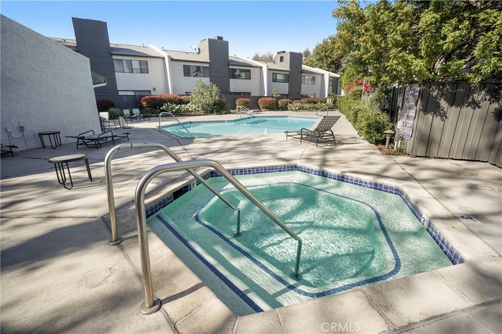 Nestled in a prime location, this charming condo offers the perfect blend of comfort and convenience. Boasting three spacious bedrooms and 1.5 baths, it features a large, sunlit living room that seamlessly extends to an inviting enclosed patio, ideal for relaxing or entertaining. The kitchen shines with sleek quartz countertops, ample pantry space, and recessed lighting, creating a warm and functional space. A washer and dryer on the main floor add to the convenience. Upstairs, the bedrooms are bright and airy, equipped with ceiling fans, mirrored closet doors, and an abundance of natural light. Unit has a fresh coat of paint. The community amenities include a sparkling pool and spa, perfect for unwinding. With two designated carport parking spaces, this home is as practical as it is welcoming.