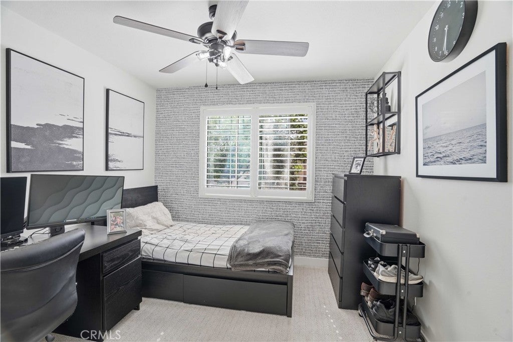 Welcome to this model-perfect and professionally designed residence nestled within the highly sought-after Cheyenne community! Step inside to discover a beautifully appointed kitchen featuring sleek quartz countertops, a stylish tile backsplash, shaker cabinetry, stainless steel appliances, and an expansive breakfast bar, perfect for both casual dining and entertaining. The inviting living room offers a cozy fireplace, custom accent walls, and integrated surround sound, creating an ideal space to relax or host guests. The main level also includes a well-appointed guest bathroom with an updated vanity and cleverly designed hidden storage, as well as a rare dedicated laundry room with an adjacent pantry, providing exceptional functionality and storage. Upstairs, the spacious primary suite boasts vaulted ceilings, abundant natural light, and a ceiling fan for added comfort. The en-suite bathroom features dual sinks, a standing shower, and a generous walk-in closet. Two additional bedrooms, each with ceiling fans, share a beautifully updated secondary bathroom with a shower-tub combination. A versatile loft area offers the perfect space for a home office, media room, or flex space. The last elegant touch is plantation shutters throughout the home. Step outside to a tranquil backyard retreat complete with a raised deck, serene landscaping, and ambient string lighting...ideal for outdoor entertaining. You will also find an attached 2 car garage with durable epoxy flooring. Residents enjoy access to exceptional HOA amenities, including a pool, spa, sport court, and trash services. Ideally located near top-rated schools, parks, shopping, and dining, this home offers both comfort and convenience. Meticulously maintained and thoughtfully upgraded, this is a home you’ll be proud to call your own!