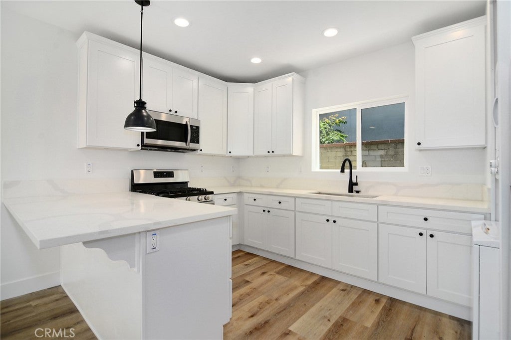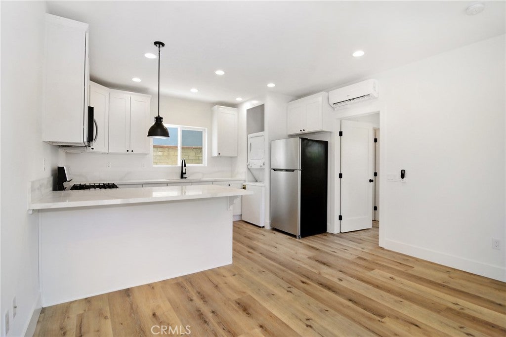 Welcome to this recently remodeled detached 1 bed, 1 bath ADU with its own address located in Reseda. This home features a private gated entrance with 1 parking space. The front yard has the perfect amount of privacy and space for extra storage. Enter into the living room which boasts an open floor plan and leads directly into the kitchen with shaker cabinets and stainless steel appliances. Beautiful Vinyl flooring runs throughout the home which also features a washer/dryer, tankless water heater, Mini split hvac system and recessed lighting. The bathroom includes a beautiful shower, vanity and recessed lighting. Water is included in rent.