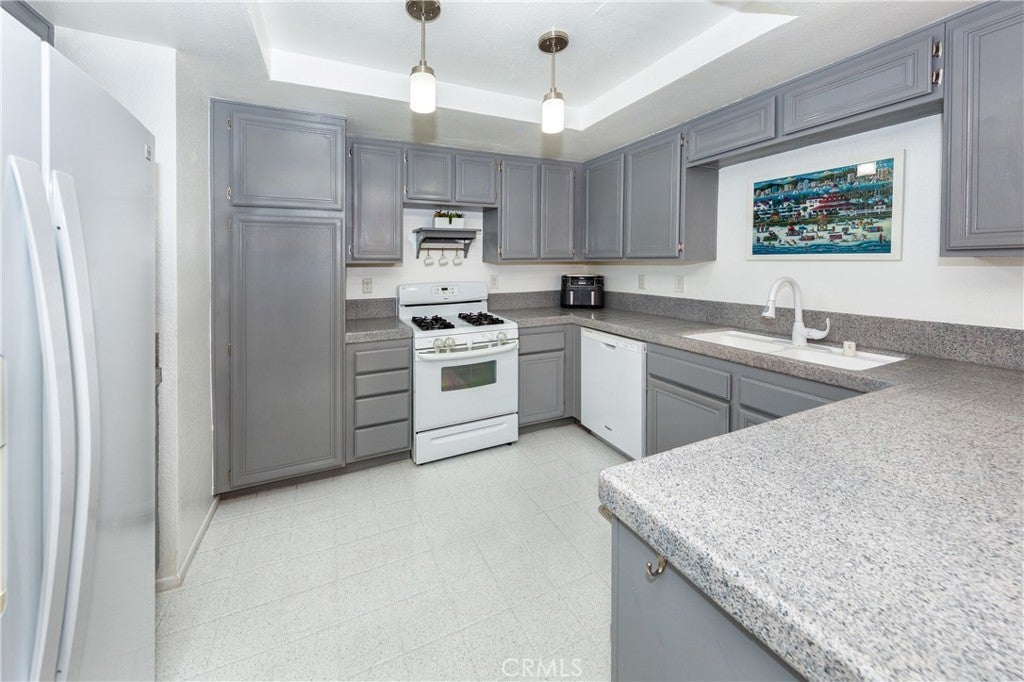 Absolutely Stunning Stevenson Ranch Condo! Shows like a model and has tons of upgrades! Fabulous open floor plan with large bright windows featuring decorator sharp window treatments. Dining area is open to kitchen that includes the refrigerator and microwave. The living area and features lovely views of the lush green park like setting and grand patio. Great size primary bedroom with an ensuite bathroom. Laundry is conveniently located upstairs, and washer and dryer are included! Great location at the back of the complex! Oversize two car garage with lots of guest parking nearby. The Diamond Head community has pools, spas, playgrounds and lots of grass areas. Close to freeway, shopping, restaurants and schools! HURRY! Won't last!! Available for a June 1, 2026 move in. *Fireplace is not usable