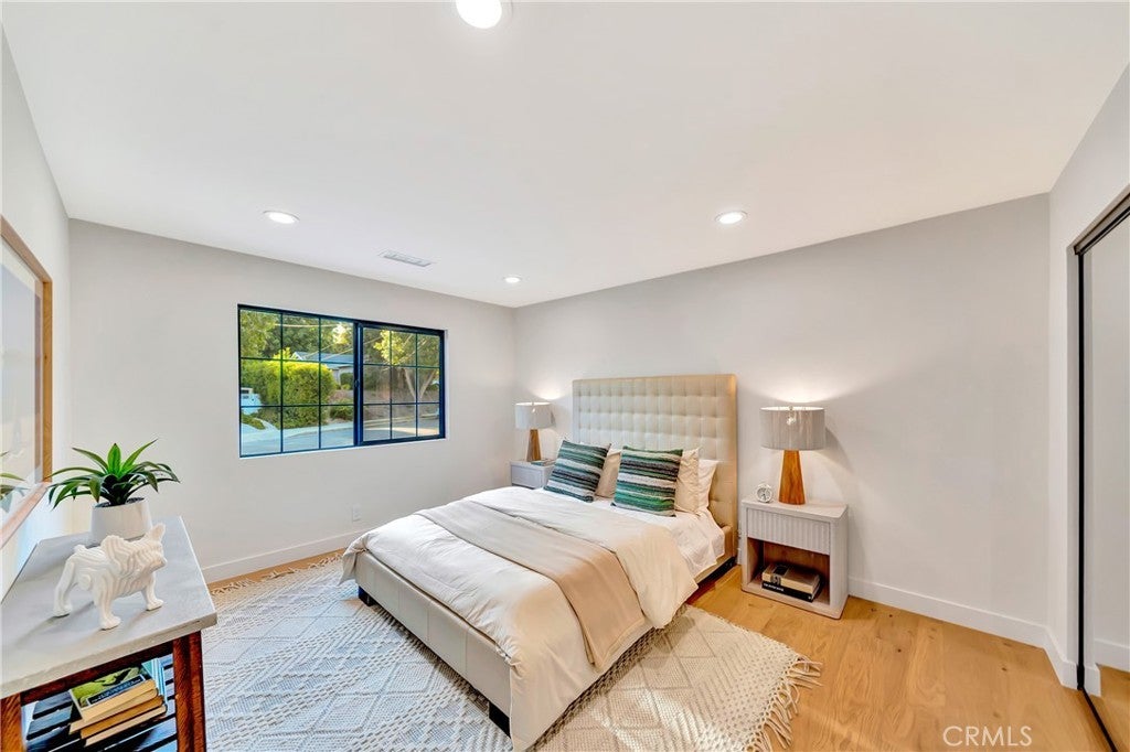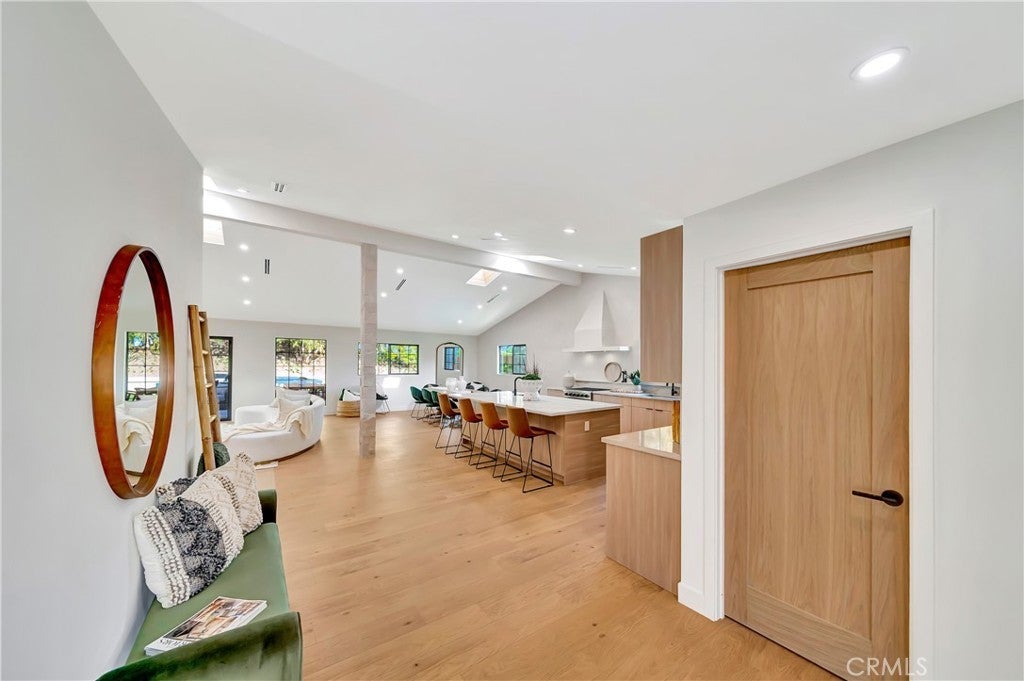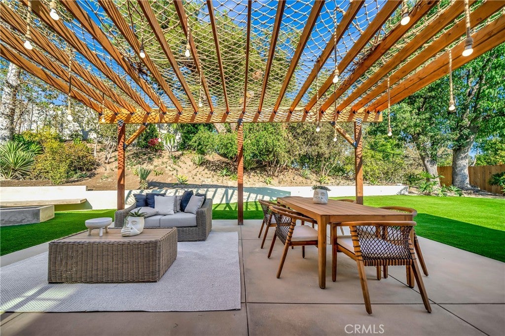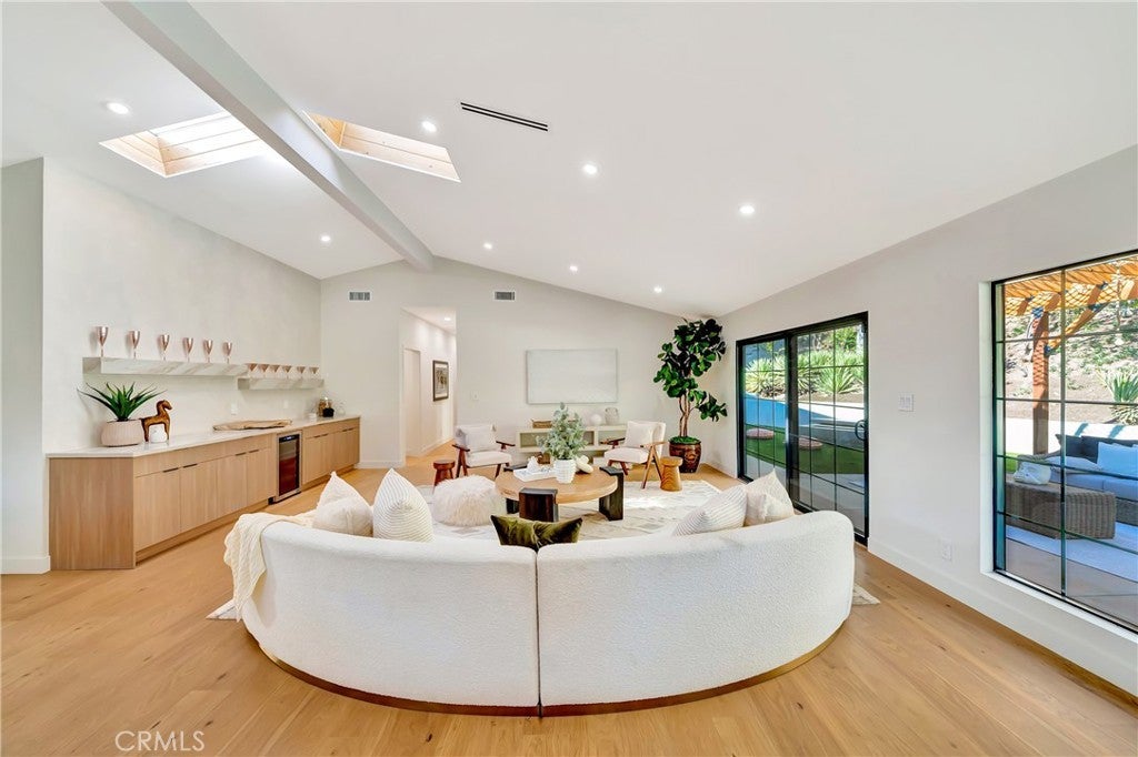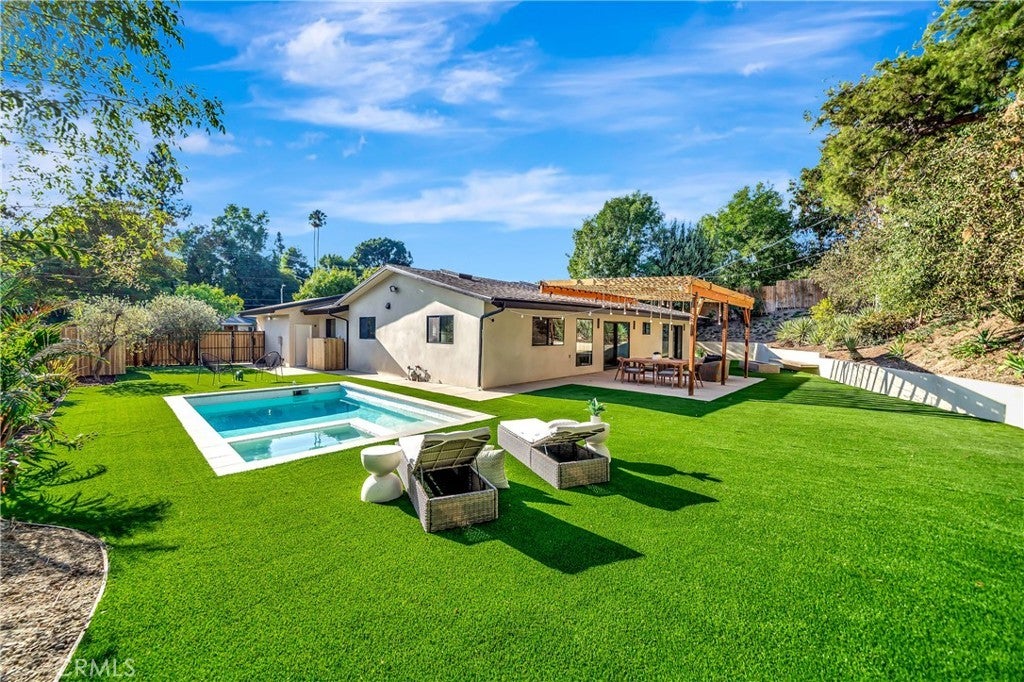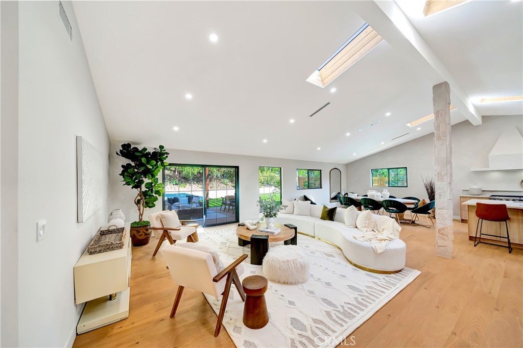 Set on a 14,165 sq. ft. flat and private lot in prime Woodland Hills, this stunning modern farmhouse offers the ultimate blend of luxury, space, and seclusion This fully remodeled and expanded modern farmhouse, with the required permits and OK for CofO, sits on a spacious, private flat lot and has been reimagined from top to bottom with luxury finishes and modern upgrades. Virtually everything is new, including pool, backyard, patio, electrical, plumbing, roofing, HVAC, and more—making this home completely turnkey. The open-concept floor plan boasts vaulted ceilings, wide-plank water proof wood floors, skylights, and expansive black-framed windows that flood the home with natural light. The chef’s kitchen features custom cabinetry, a stone waterfall island, high-end appliances, and a walk-in pantry—opening to a spacious dining area and great room, ideal for entertaining. Retreat to the luxurious primary suite with vaulted ceilings, direct yard access, and a spa-like bath with dual vanities and a large walk-in shower. Three additional bedrooms, including a private mini suite, provide flexibility for family, guests, or office use. Step outside to a brand-new resort-style pool and spa, surrounded by a fully private backyard with smooth stucco Venetian-plaster walls. The redesigned outdoor space includes a turf play area and a covered patio/pergola lounge with string lighting and a built-in fire pit—perfect for year-round entertaining. Additional highlights include two brand-new HVAC systems, smart-home upgrades, a dedicated laundry room, RV parking with full hookups being installed, and a finished two-car garage equipped with electric vehicle power. Ideally located near top schools, shopping, and dining, this property combines privacy, luxury, and convenience—offering top-notch modern living in the Valley at its finest.