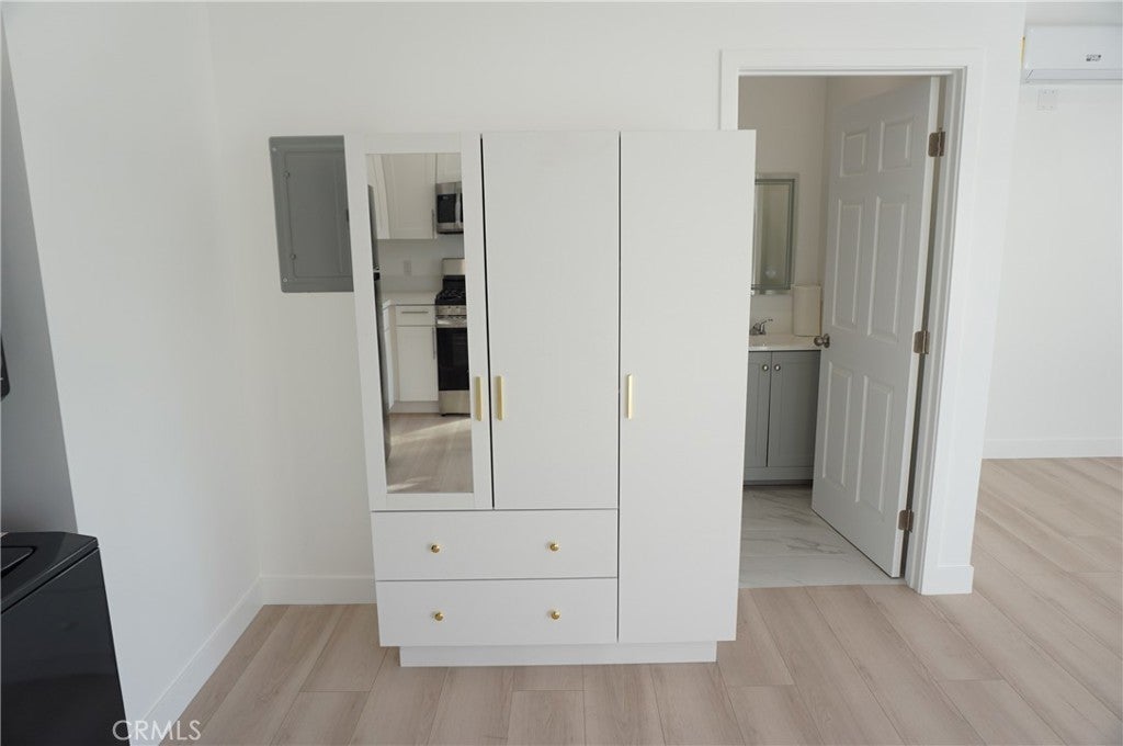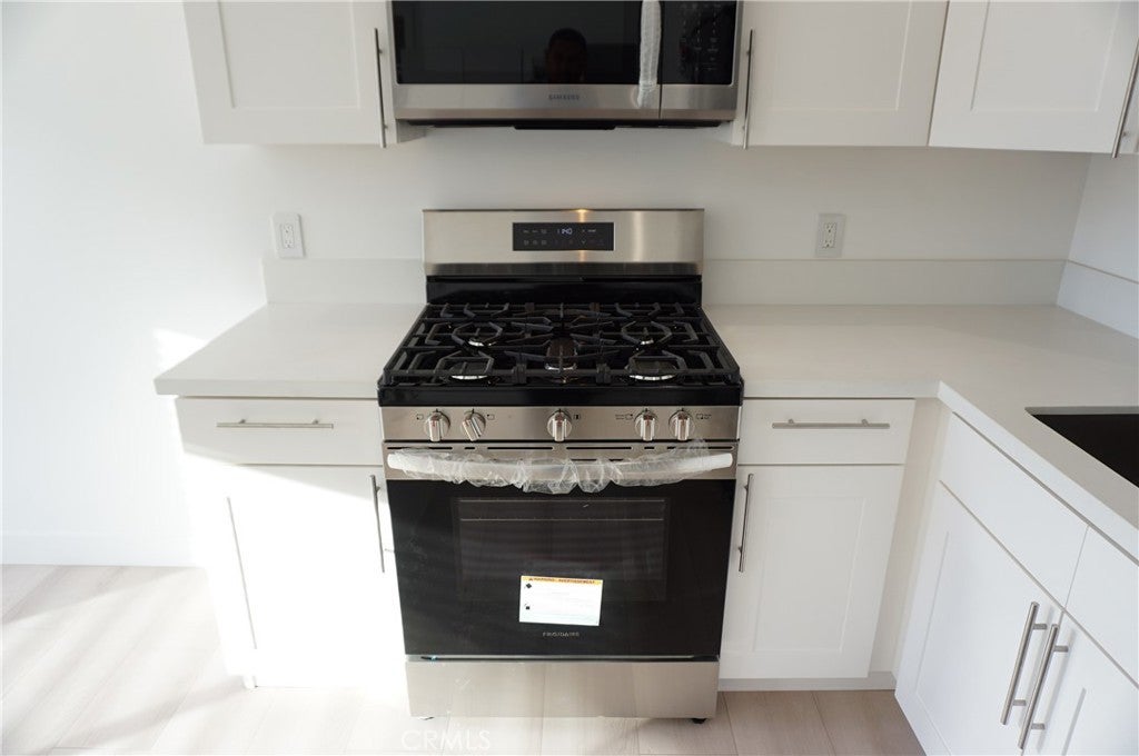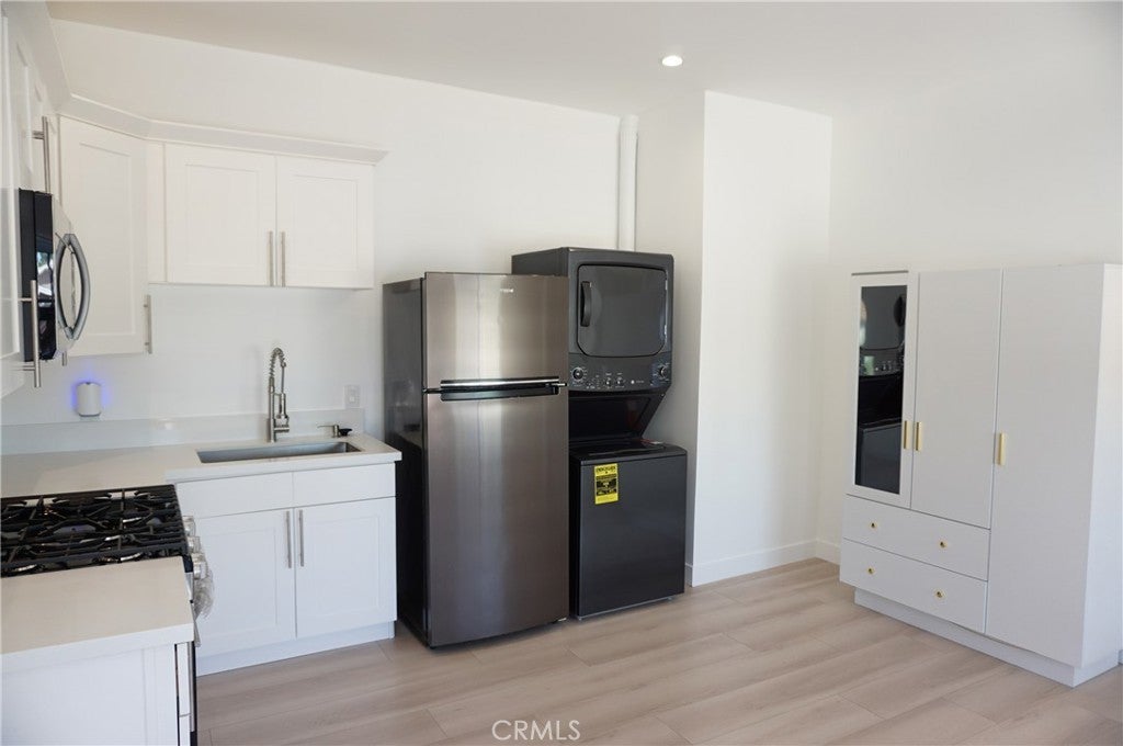 Studio ADU in the heart of Northridge! 400 sq. ft. of living space with an open floor plan featuring laminate floor, recessed lights throughout, mini-split AC/heater unit, and a tankless water heater. The kitchen includes white cabinets, quartz countertops, and brand-new appliances, including a gas stove, microwave, refrigerator, washer, and dryer. The bathroom is beautifully designed with tiled floors and a shower with a glass door. This ADU is situated at the front of the property with a spacious, fenced, private front yard with very low maintenance. Conveniently located near CSUN, shopping centers, Target, and major freeways, this ADU offers easy access to everything Northridge has to offer. Sorry, no pets. A must-see!