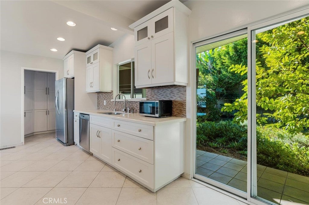South of the Boulevard! Mid-Century home with amazing 270-degree unobstructed panoramic mountain, valley and canyon views from almost every room. Luxury living at the end of a quiet cul-de-sac. The gated and private grassy front yard leads to this bright and open living space. Enter through the double glass doors and experience the explosive jet-liner views. High exposed post & beam ceilings, stone fireplace, and wide plank wood floors run throughout most of this home’s interior plus a huge balcony overlooking the valley. The Formal Dining area is open to the Living Room and Kitchen and has a custom wet bar plus more of those views. The Chef’s Kitchen offers quartz counters, stainless steel appliances, upgraded cabinets and of course more of those outstanding views. There are 3 Bedrooms, 2 with views, including the Primary Bedroom Suite with a walk-in closet and spacious Primary Bathroom with quartz counters, double sinks, deep spa tub plus separate shower with multiple shower heads and seating. Detached bonus room is great for gym or additional storage, plus spacious 2-car garage. With a prime location in the hills above Sherman Oaks and easy access to Ventura Blvd shops and dining plus great access to Beverly Hills via Coldwater Canyon, this move-in ready lease residence is not to be missed! LANDLORD REQUIRES RENT TO BE PAID IN ADVANCE IN 6 MONTH INCREMENTS.