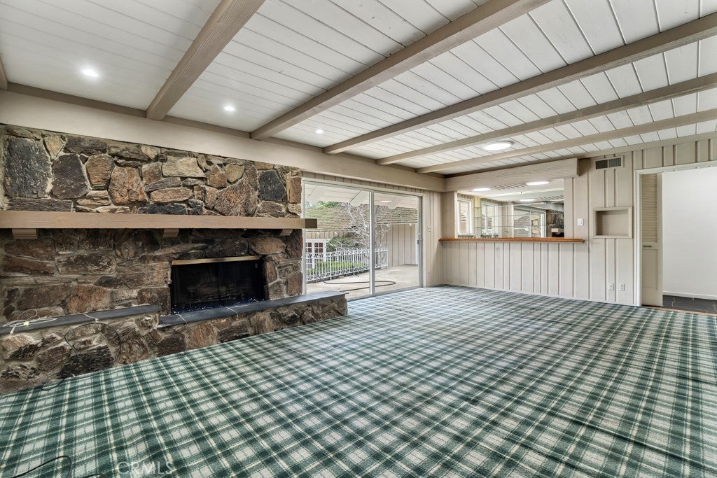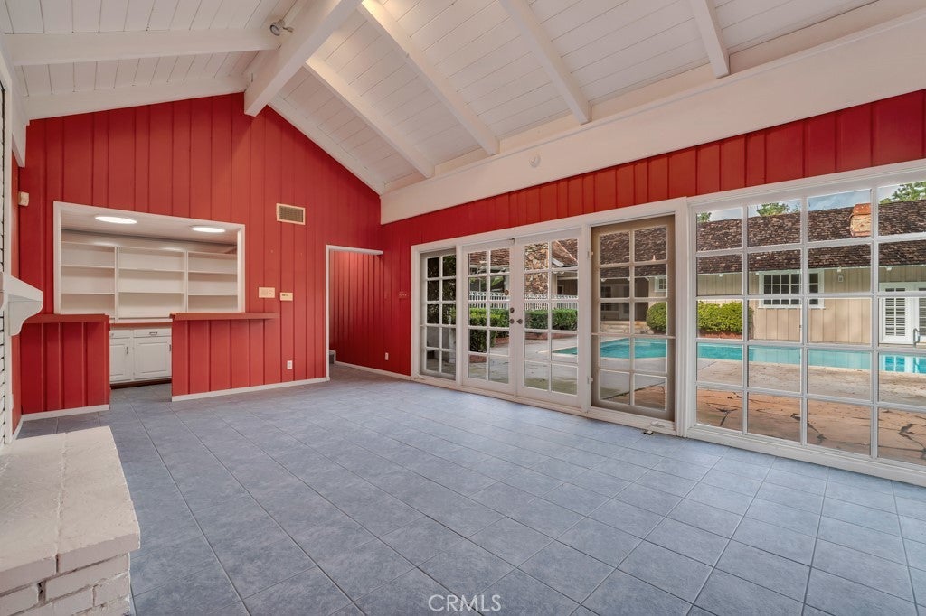Situated on one of the most coveted Queen streets, South of Ventura Boulevard in a prestigious and highly coveted Woodland Hills neighborhood, this commanding estate offers an unparalleled blend of scale and character. Resting on a massive, flat 19,182-square-foot lot, the residence spans nearly 4,900 square feet of single-level living space, greeting you with architectural drama from the moment you step through the double-door entry. The grand living room serves as the home’s centerpiece, featuring soaring vaulted ceilings with exposed wood beams, a massive floor-to-ceiling stone fireplace, and expansive leaded-glass windows that flood the interior with natural light while framing views of the lush, private grounds. Designed for those who love to entertain, the home flows effortlessly into a spacious family room anchored by a rich wood-paneled wet bar and direct access to the expansive backyard. The chef’s kitchen is a model of functional scale, boasting dual skylights, a center island, double wall ovens, and ample cabinetry, all overlooking a bright breakfast nook. Adding to the property’s immense versatility is an attached guest house with a private entrance, perfectly suited for a high-end recording studio, a quiet home office, or a sophisticated guest suite for multi-generational living. The primary suite is a true sanctuary of grand proportions, offering a classic white brick fireplace, plantation shutters, and a unique vanity area with floor-to-ceiling glass that peers into a secluded garden. The exterior grounds represent the quintessential California lifestyle, offering a sprawling backyard that is rare for the area. A sparkling, oversized swimming pool is surrounded by a vast concrete deck, providing the perfect canvas for al fresco dining and large-scale gatherings. With a wide-set driveway leading to a three-car garage and mature landscaping providing ultimate seclusion, this property is a private retreat just minutes from the hiking trails of Serrania Park, top-rated schools, and the world-class shopping and dining at The Village at Westfield Topanga. Whether you are looking to move right in or customize a mid-century masterpiece, this Queen Victoria estate offers a rare opportunity to own a legacy property in one of the San Fernando Valley’s most exclusive enclaves.