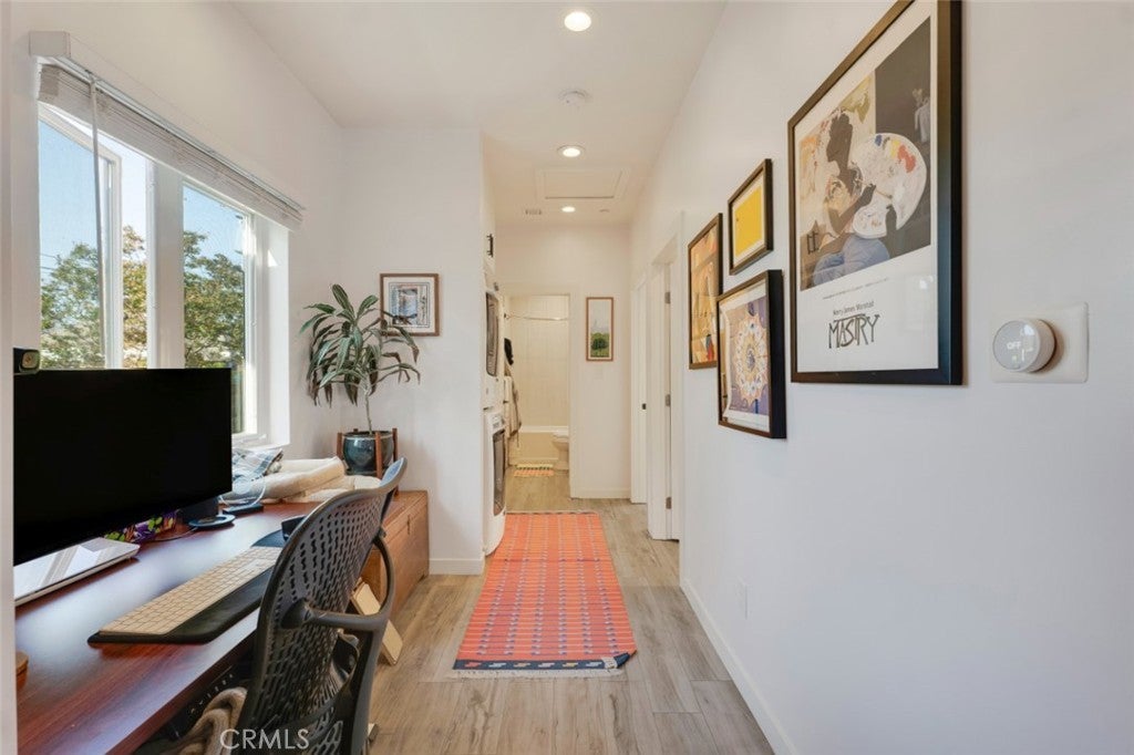 Exceptional opportunity in sought-after Atwater Village featuring 2 separate single-family homes on generous corner lot with SB 9 lot split potential already in motion. Enjoy flexibility to utilize as an owner-occupied residence with a separate income-producing unit. The main home—delivered vacant—offers 3 beds + bonus room, 3 baths, & nearly 2,200 sq ft of thoughtfully updated living space with owned solar! Blending modern upgrades with preserved character, including antique-inspired lighting, abundant natural light, & a charming Juliet balcony off the dining area. Remodeled kitchen with white shaker cabinetry, Vetrazzo counters, passthrough to the open great room, & sleek induction range, energy efficient & cleaner indoor air quality, & a cleverly concealed stackable laundry closet. A spiral staircase connects multiple levels, leading to a cozy loft above & a versatile lower level featuring a spacious primary bedroom with dual closets, French doors to a private courtyard, a versatile bonus room that could be used as a 4th bedroom, additional living space, & a full bath, ideal for guests, extended family, or income potential with direct exterior access. The second home, built in 2017 with its own address & currently tenant-occupied, offers 2 beds, 1 bath, & 900+ sq ft with vaulted beamed ceilings expanding the open-concept living room, dining area, & kitchen with center island, & French door that opens to a spacious brick patio with fountain, plus gated parking. The grounds create a peaceful retreat, featuring beautifully curated drought-tolerant landscaping, lush mature greenery, colorful flowering plants, fruit trees (avocado, fig, orange, & lime), & thoughtfully designed hardscapes with meandering paths that create a tranquil, garden-like setting. The property has already received preliminary approval from the City of Los Angeles for an SB 9 Urban Lot Split, providing a head start toward creating 2 legal parcels while preserving the option to maintain the current configuration. Located within the attendance boundaries of highly rated schools including Franklin Elementary, Washington Irving Middle, & John Marshall High, & just moments from the vibrant shops & dining along Glendale Blvd, Griffith Park, & the Los Angeles River Bike Path, with convenient access to the 5 & 2 freeways, this is a rare offering that combines lifestyle, flexibility, & long-term upside in one of Northeast LA’s most desirable neighborhoods.