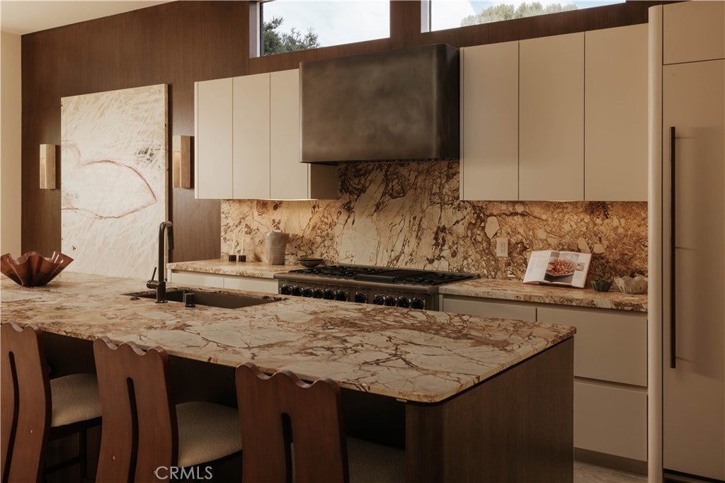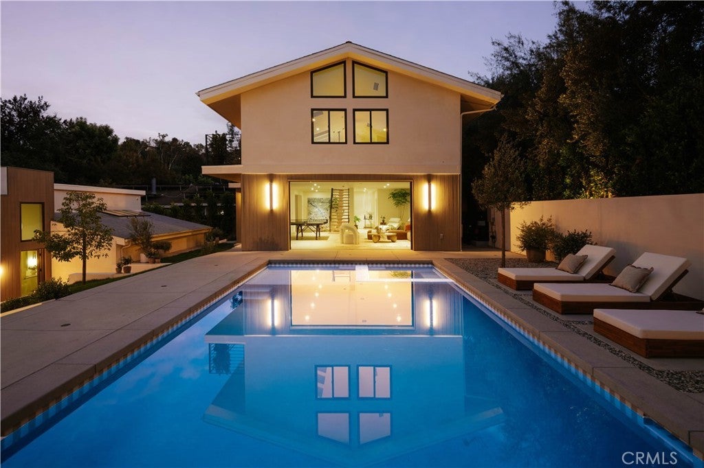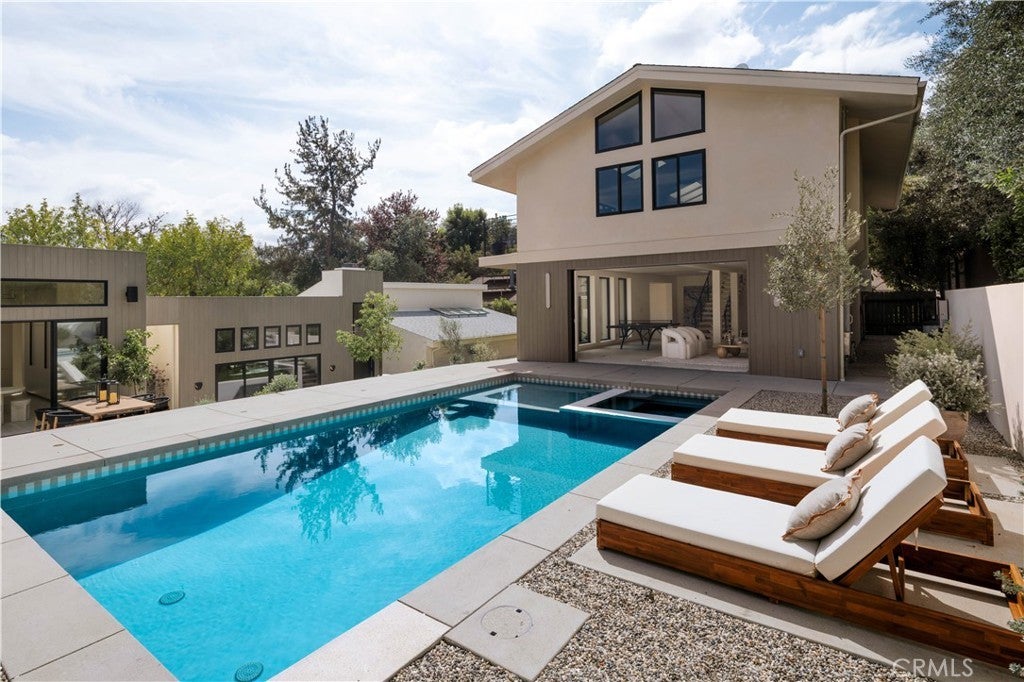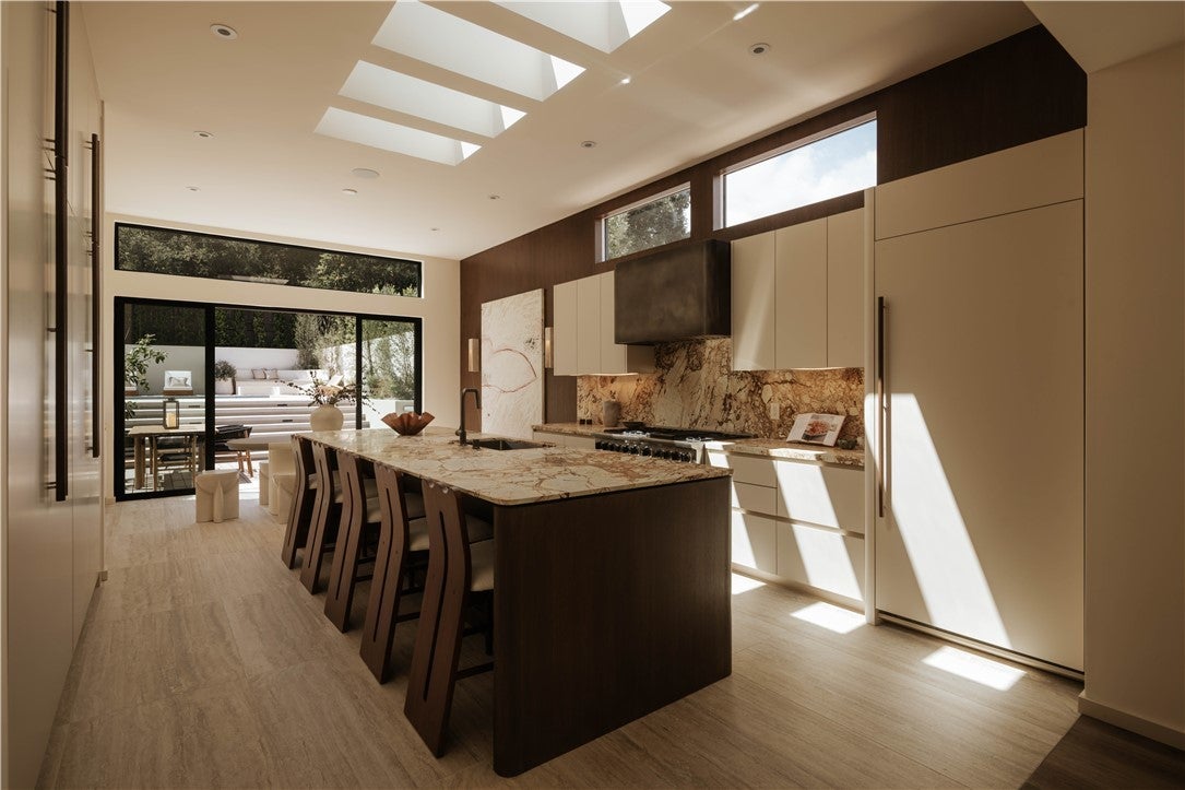 Set in the coveted Silver Triangle of Studio City and within the highly sought-after Carpenter School District, The Laurel Haven Residence has been completely reimagined undergoing a full-scale renovation defined by exceptional scale, design, and craftsmanship. Landscaping surrounds the home with ornamental grasses, sculptural plantings, and lavender gardens, creating a tranquil modern California setting. Designed with a refined contemporary aesthetic, the home blends clean architectural lines, curated natural materials, and interlocking indoor-outdoor living, embodying the essence of the Southern California lifestyle. Inside, the home features a curated palette of luxury materials and designer finishes, including premium hardwood flooring, Silver Travertine, Roman Imperiale quartzite, limestone accents, and Breccia marble surfaces. Custom architectural millwork and Dal Lusso cabinetry elevate the interiors with warmth and sophistication. At the heart of the home is a designer chef’s kitchen featuring an oversized island with custom stained wood cabinetry and integrated high-end appliances. Thoughtful architectural lighting and refined stone surfaces create a space ideal for both everyday living and entertaining. Designed for California indoor-outdoor living, the property offers multiple outdoor spaces including a dining patio, kitchen deck, pool terrace, landscaped courtyard, and private entertaining areas. The primary suite serves as a private retreat with a spa-style bathroom, custom closet design, and an ensuite foyer for added comfort and convenience. A fully independent accessory dwelling unit (ADU) provides flexibility for guests, extended family, or a private workspace, complete with its own entrance, kitchen, balcony, and separate living quarters. Perfectly positioned south of Ventura Boulevard, the home is moments from Erewhon, Equinox, Shops at Sportsmen’s Lodge, Sugarfish, and the cafés of Tujunga Village. Nearby Fryman Canyon offers scenic trails, while convenient access to the Westside, Hollywood, and Beverly Hills makes commuting easy. This exceptional residence blends modern architecture, refined materials, and a premier Studio City location to deliver a lifestyle defined by comfort, design, and effortless California living.