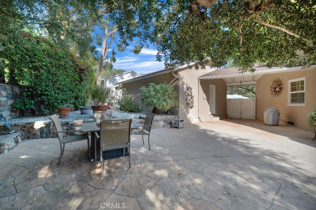 Set on a quiet cul-de-sac in the highly desirable La Crescenta foothills, this beautifully maintained single-story 3-bedroom, 3-bath home captures the neighborhood’s enduring appeal with mountain views in every direction, wide tree-lined streets, and a peaceful residential setting known for its pride of ownership and inviting curb appeal. A gently curved walkway, drought-conscious landscaping, large shade trees, wood siding, shutters, brick accents, and a wide driveway with brick ribbons create a memorable first impression, while newer hardwood floors extend through the main living spaces. The generous formal living room is filled with natural light and enhanced by plantation shutters and decorative display shelves and passthroughs from the entry, while the kitchen blends warmth and functionality with granite counters, decorative tile backsplash, oak Shaker-style cabinetry, a stained glass skylight, electric range, double ovens, built-in microwave, greenhouse window, built-in banquette, and a butler’s desk area. Open to the informal living space, the layout is ideal for everyday comfort and entertaining, anchored by a large brick fireplace with raised hearth, dual-pane windows, and sliding glass doors that open to the backyard. The primary suite addition offers a bay window, recessed lighting, ceiling fan, mirrored walk-in closet, and a spacious en-suite 3/4 bath, while the secondary bedrooms include mirrored closets, one with a coved ceiling and direct bath access. Outside, the property continues to impress with a covered brick patio, broader stamped concrete patio, raised garden beds with walkways, natural stone wall built by the original owner, built-in BBQ with granite counter, water features, fire feature, and an extraordinary shade tree that makes the yard feel like a private retreat. A breezeway leads to the detached two-car garage and provides convenient gated access from the front, completing a home that offers comfort, character, and a classic La Crescenta lifestyle.  Situated near shopping, dining, entertainment, recreation, Dunsmore Park, and highly rated schools including Dunsmore Elementary, Rosemont Middle, and Crescenta Valley High. Don’t miss your chance to join the community and make this your new home!